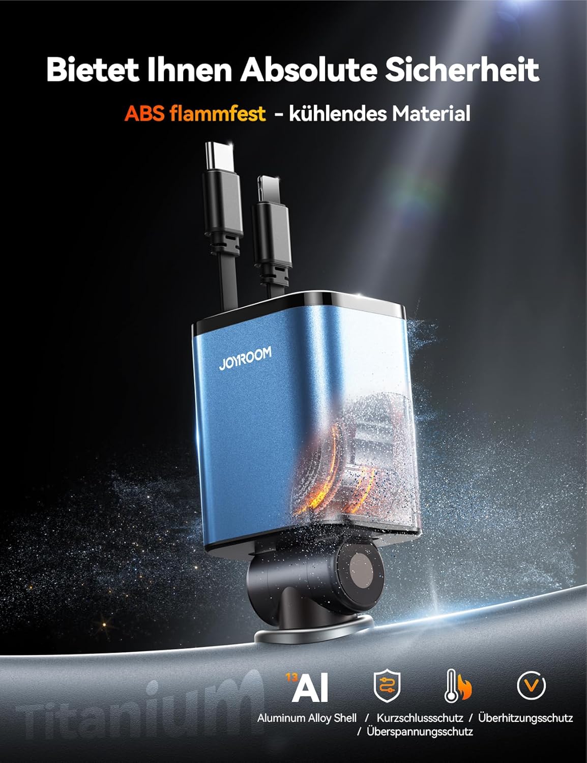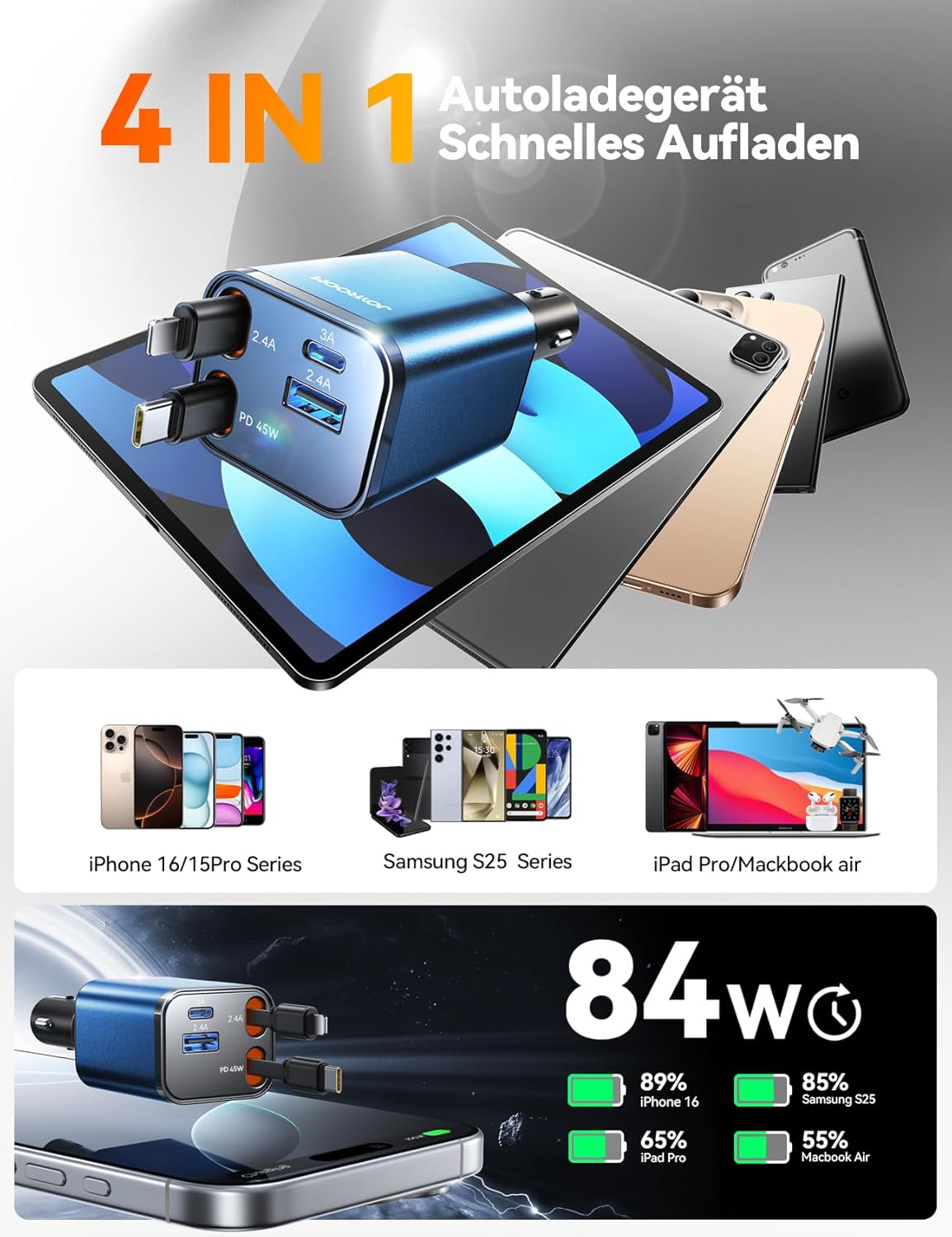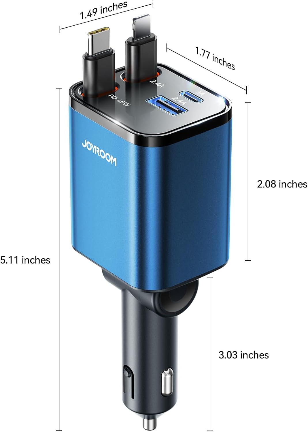 4 в 1: 2025 JOYROOM 84 W прибираща се запалка с USB C, ултракомпактна, PD 45 W бързо зареждащо се зарядно за кола, 12 V/24 V USB адаптер, автомобилни аксесоари, интериор за iPhone 16/Sumsang S25 син