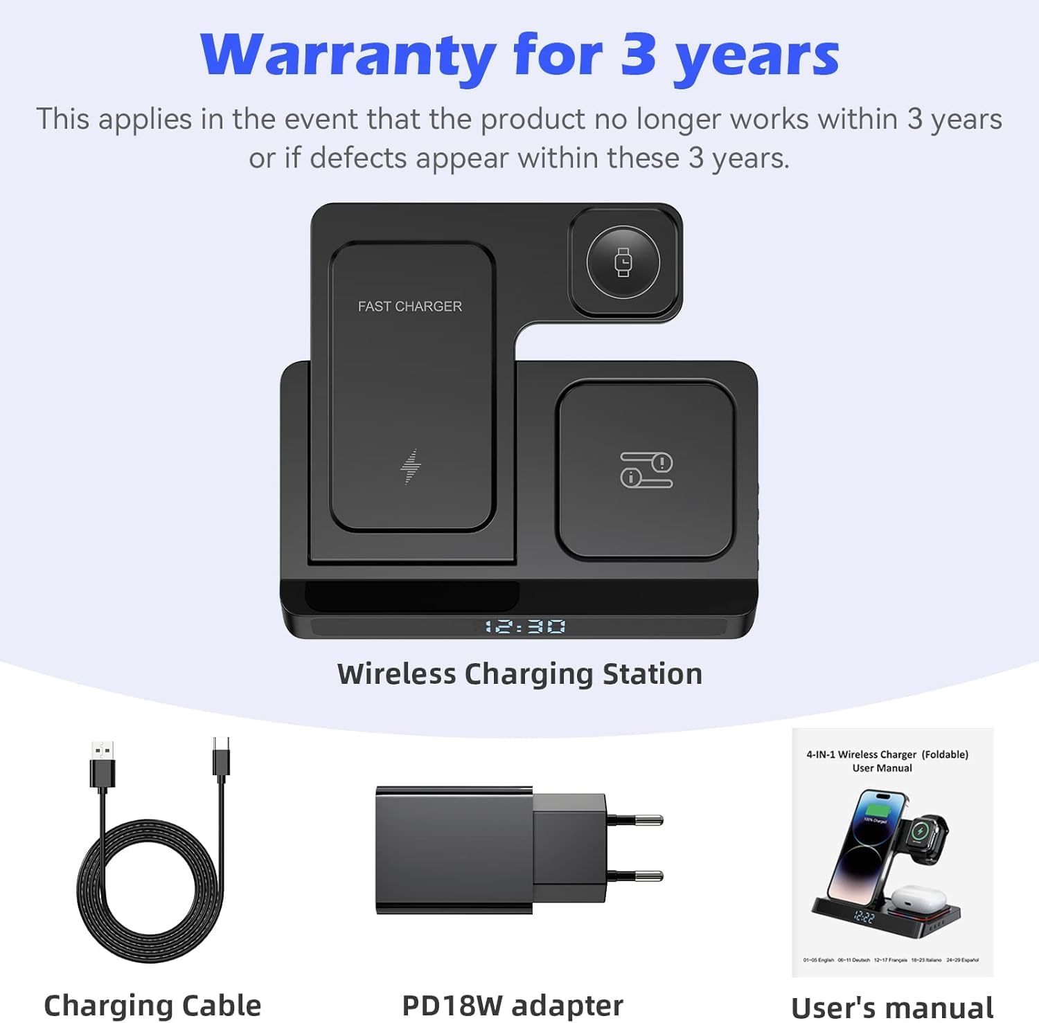The Bogseth wireless charger charges iPhone, Airpods, Apple Watch and enabled devices wirelessly at the same time, so no three separate chargers are required. You can simply place these devices on the dock and just start charging. The flat black look is a more beautiful aesthetic for your desk, kitchen top or bedside table, which saves space. Say goodbye to annoying cables and get a clean and tidy desk.