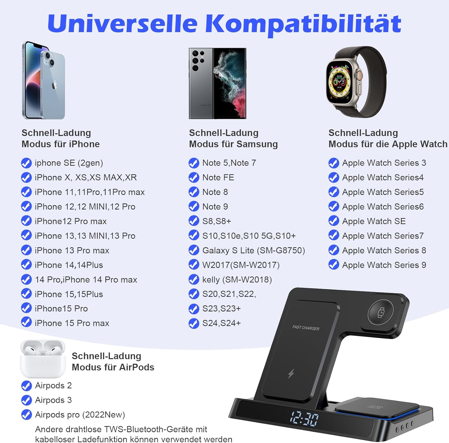 15W for Samsung Galaxy S24/S23/S22/S21/S20/S10/S10+/S9+/S9/S8/S8+/Note 20/10/9/8/7