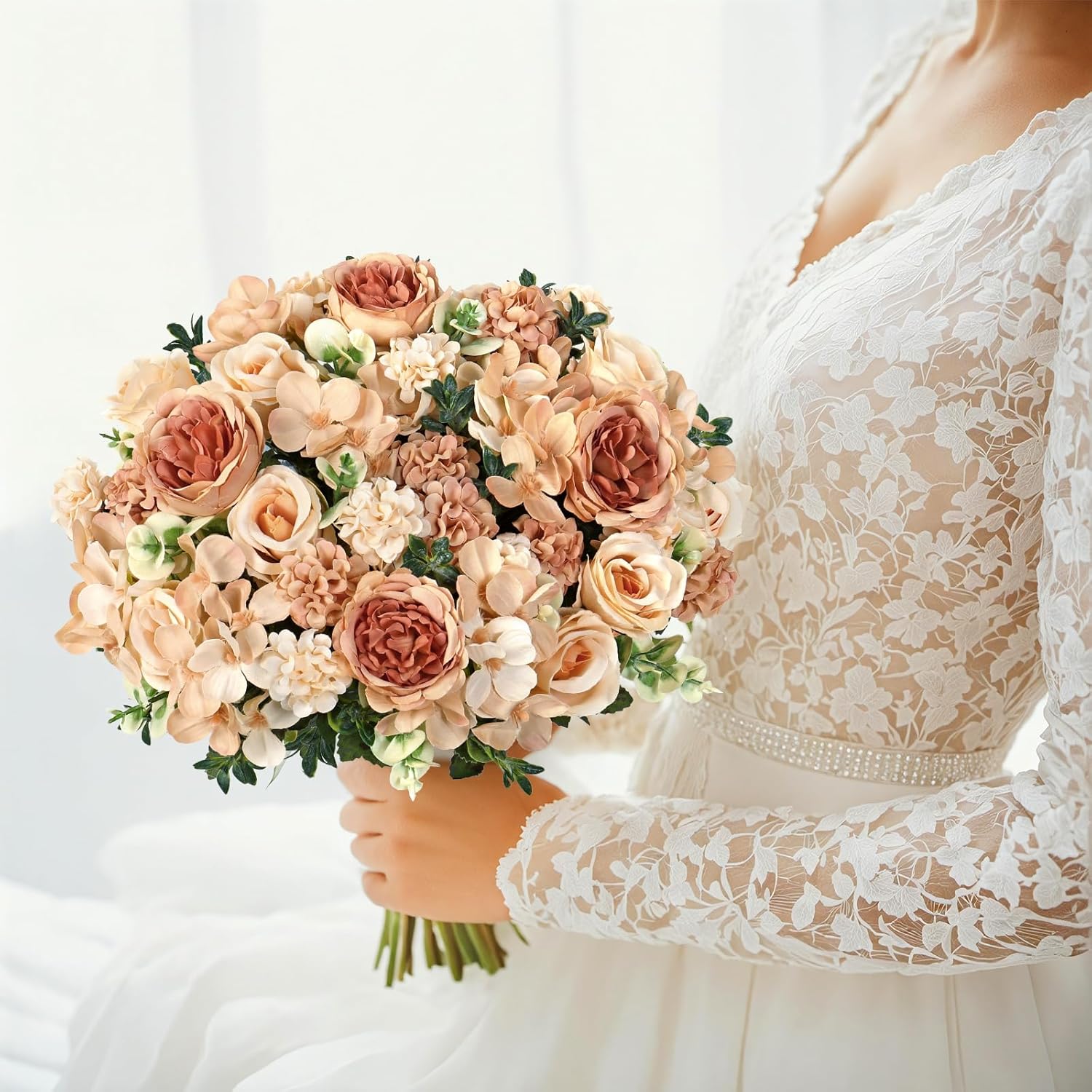 Artificial peony rose flowers with fuller, more round shape, easy to make a beautiful bridal bouquet. It is a good choice to make a specific wedding bouquet. You will receive many compliments