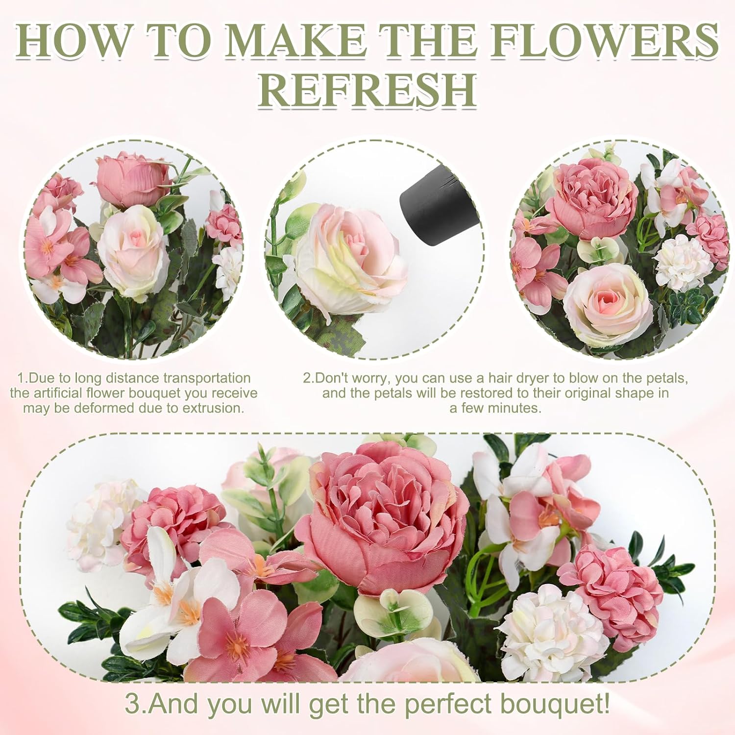 Worked perfectly for decorating kitchen tables at home. Faux silk peony roses look lifelike and elegant. Easy to decorate. Perfect for someone with no previous experience in arranging flowers
