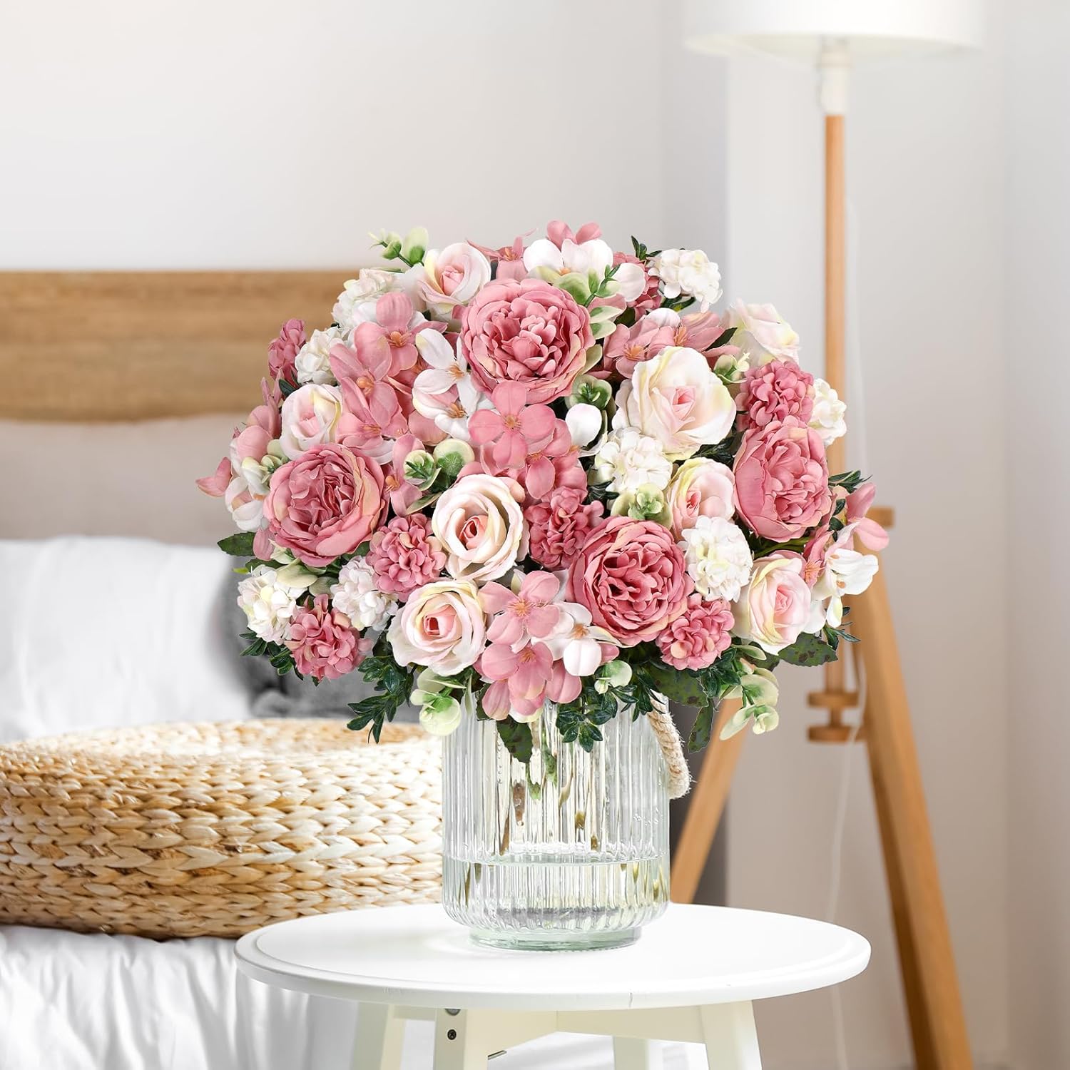 Изкуствени цветя от божури, рози и хортензии, пълни с жизненост и красота. Добавете елегантност и романтика към декорацията на вашата трапеза, сватба, парти и домашен декор.