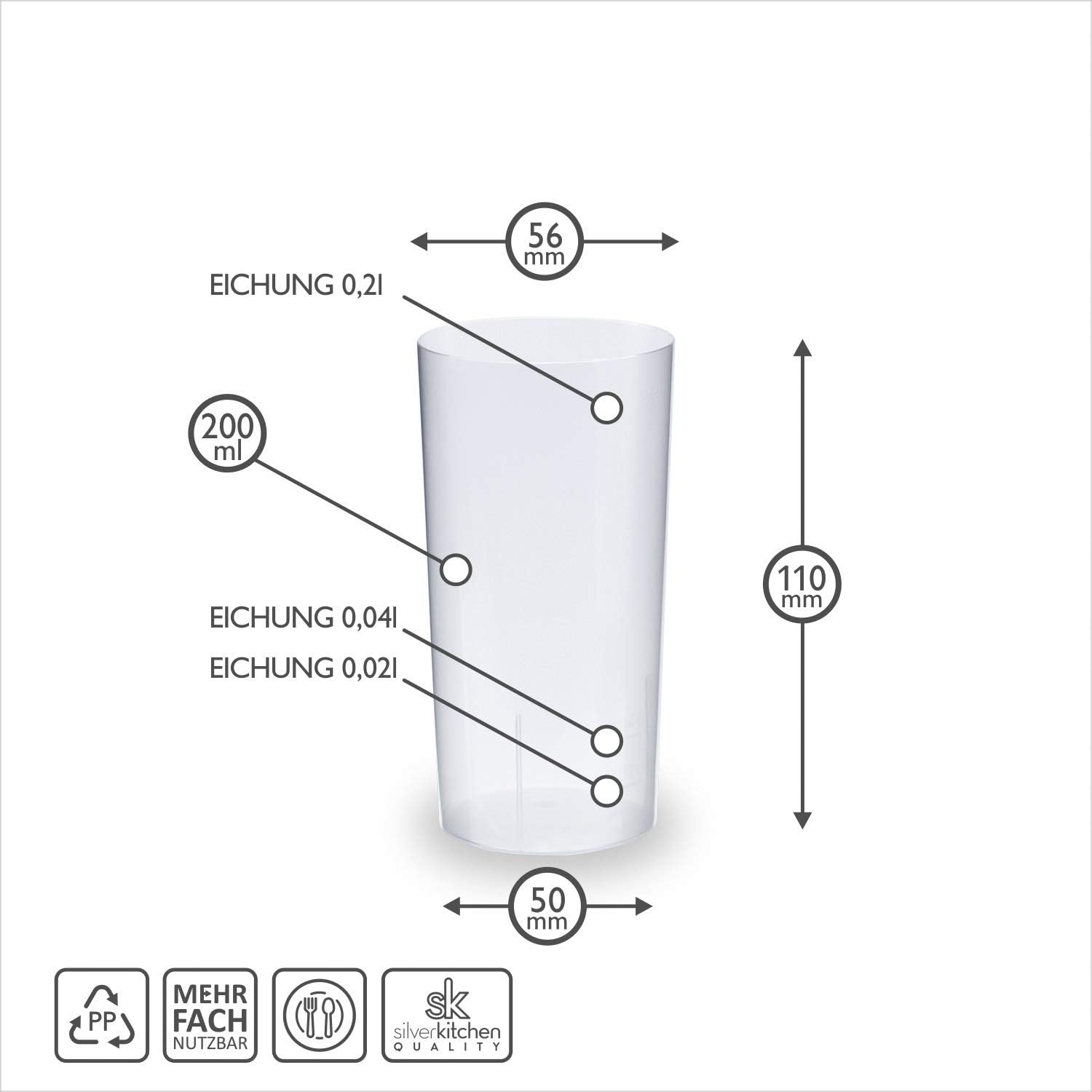Изработени от полипропилен, тези чаши са изключително здрави, тъй като пластмасата е издръжлива и здрава. Нашите чаши са идеални за избягване на счупено стъкло и отпадъци. Независимо дали става въпрос за рождени дни, сватби, барбекюта, корпоративни събития, кетъринг, ресторанти или просто за дома – стилните чаши от silverkitchen са идеални за всеки повод благодарение на високото си качество и елегантен дизайн. Насладете се на безалкохолна напитка, лонг дринк, бира или друга студена напитка от тези практични чаши за пиене от silverkitchen .