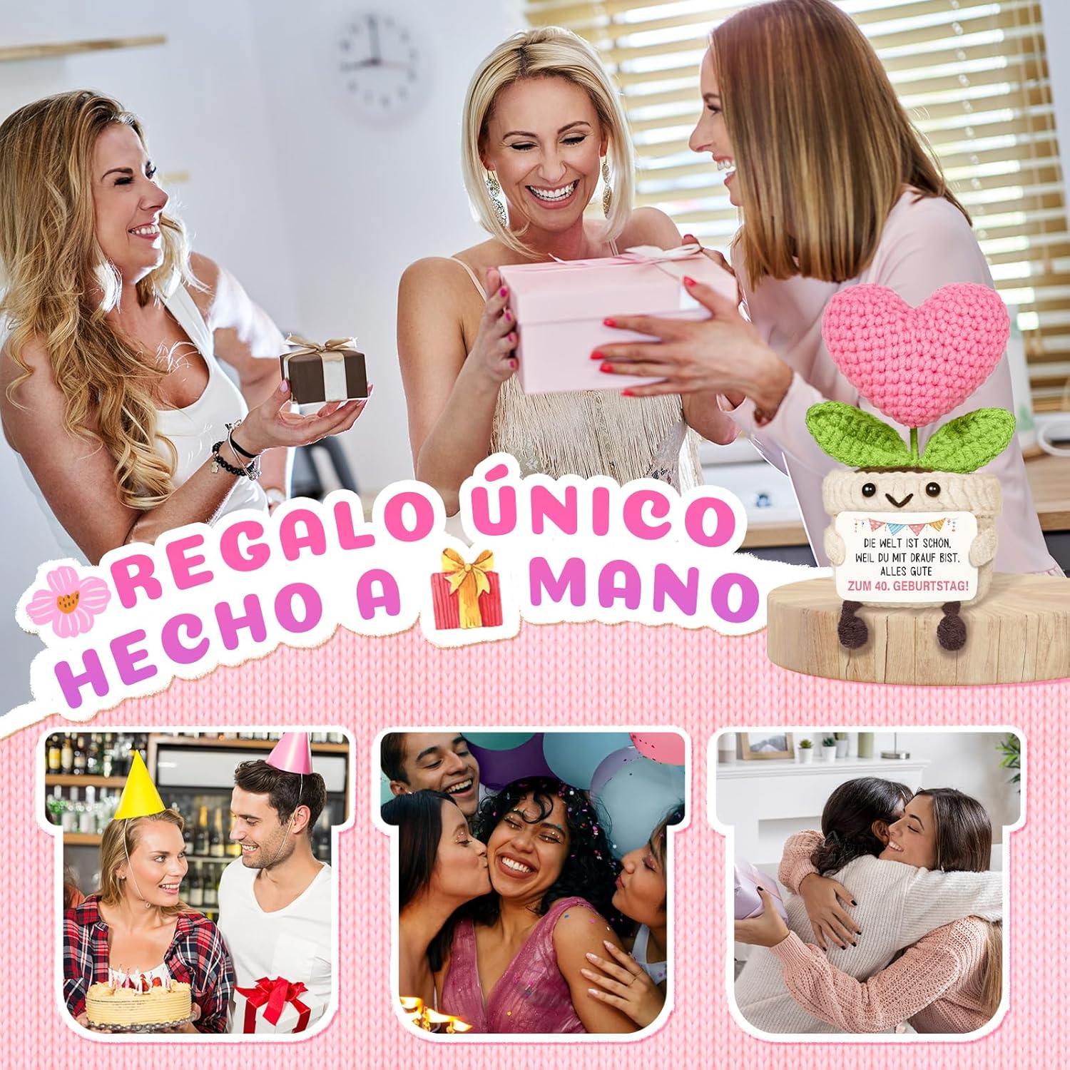 • ЧЕСТИТ 50-ТИ РОЖДЕН ДЕН Това сладко плетено цвете във формата на сърце от Giftasy е топъл подарък за 50-ти рожден ден - идеален за приятелки, сестри, майки или специални жени в живота. С веселото си лице и любящото послание „Честит 50-ти рожден ден!“, то носи радост и добро чувство в сърцето ден след ден.