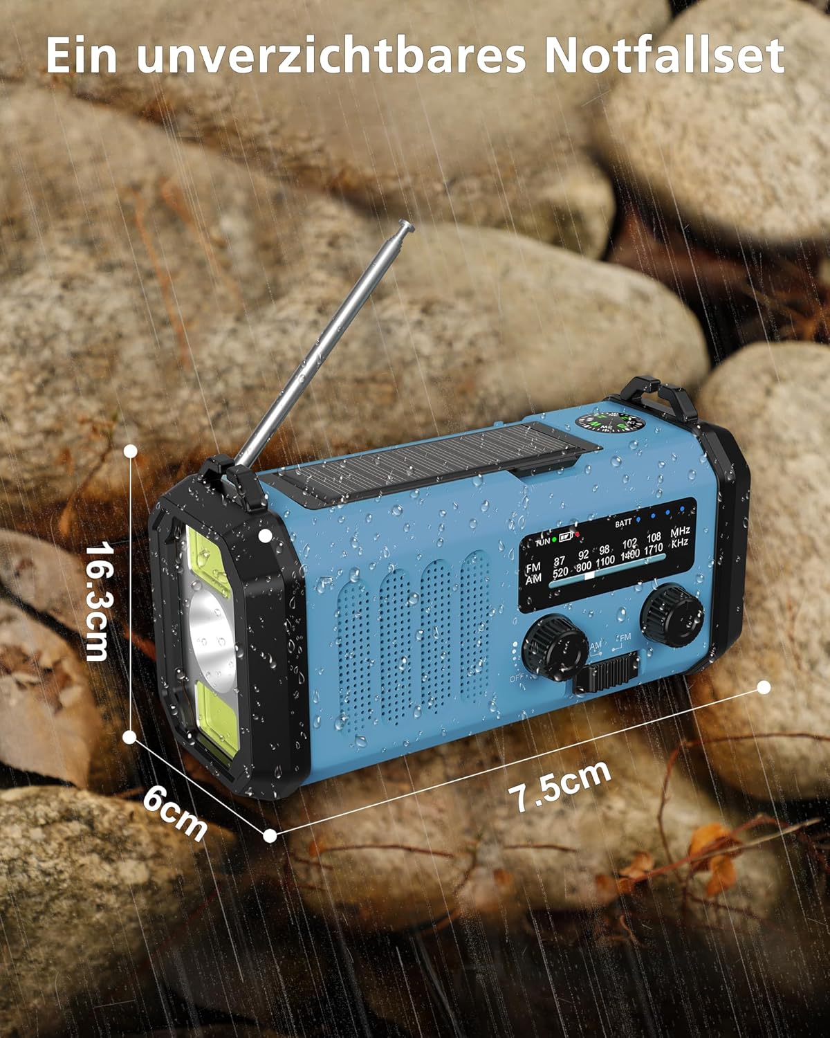 • Emergency emergency radio kit with compass and SOS alarm: If you are in danger because the body cannot move and the call for help is not loud enough, press the SOS button of this emergency solar radio with hand crank, it sends a 115 dB SOS alarm and a torch to attract the attention of rescuers. A compass at the top of the crank radio helps to orient yourself during an adventure. All this increases your chances of being rescued in case of emergency.