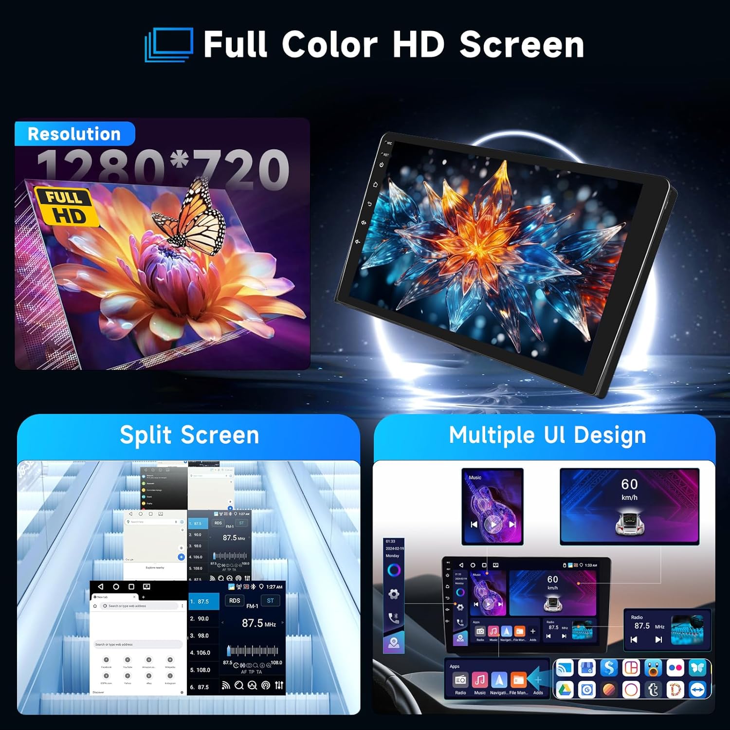 • Функции Bluetooth 5.0/DSP/FM/RDS: автомобилното радио с Android има вграден Bluetooth 5.0 и поддържа функцията за свързване с автомобил за разговори със свободни ръце и слушане на музика със свободни ръце. Когато е свързано с външен микрофон, можете лесно да осъществявате повиквания, осигурявайки висококачествени ефекти. FM/RDS радиото предлага 18 предварително зададени радиостанции и канала (FM 8). 7.50-108.0 MHz. 32-лентовият еквалайзер и разнообразието от предварително зададени стилове (напр. рок, джаз, класическа музика и др.) помагат на потребителя да подобри цялостното качество на звука.
