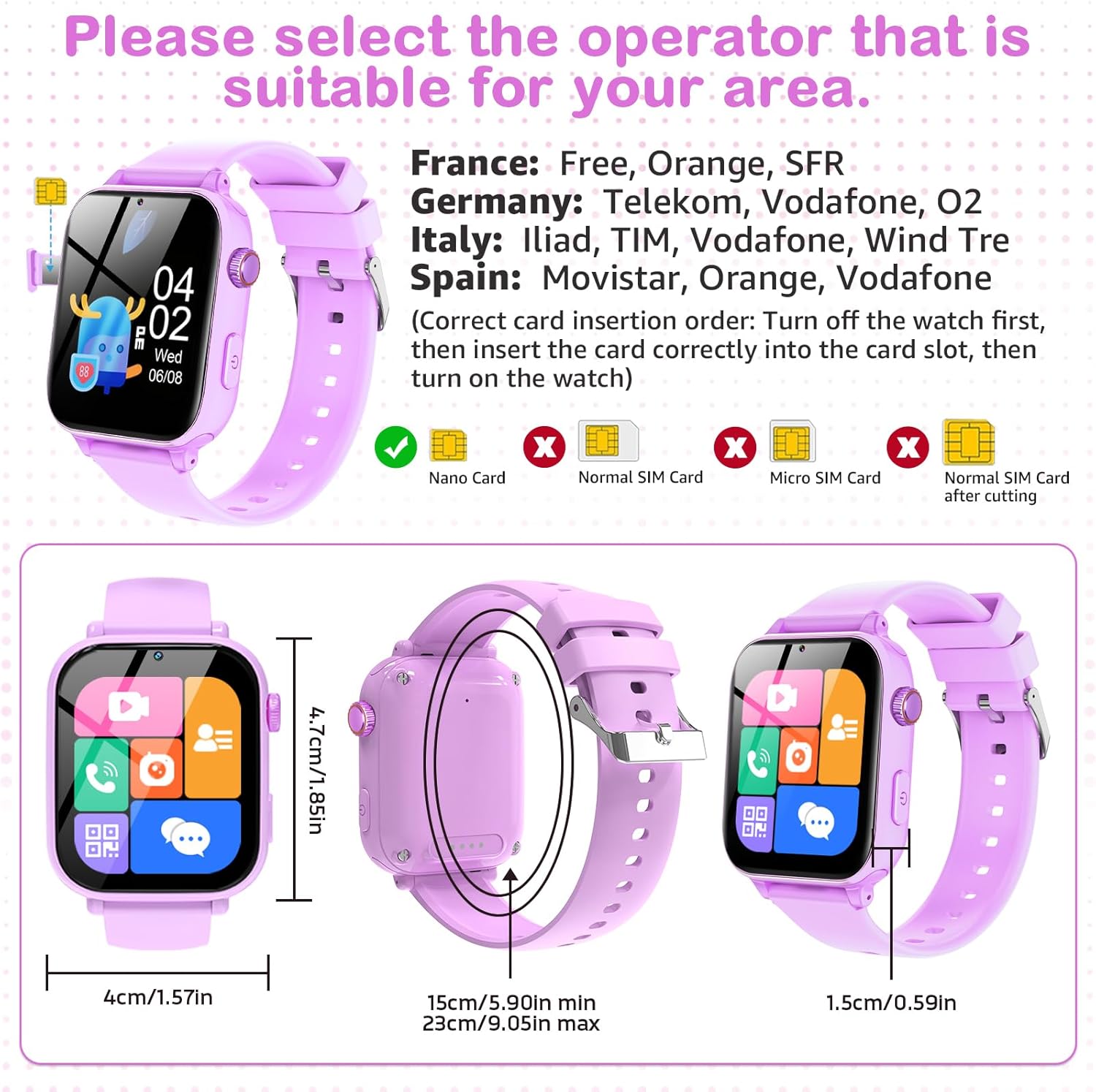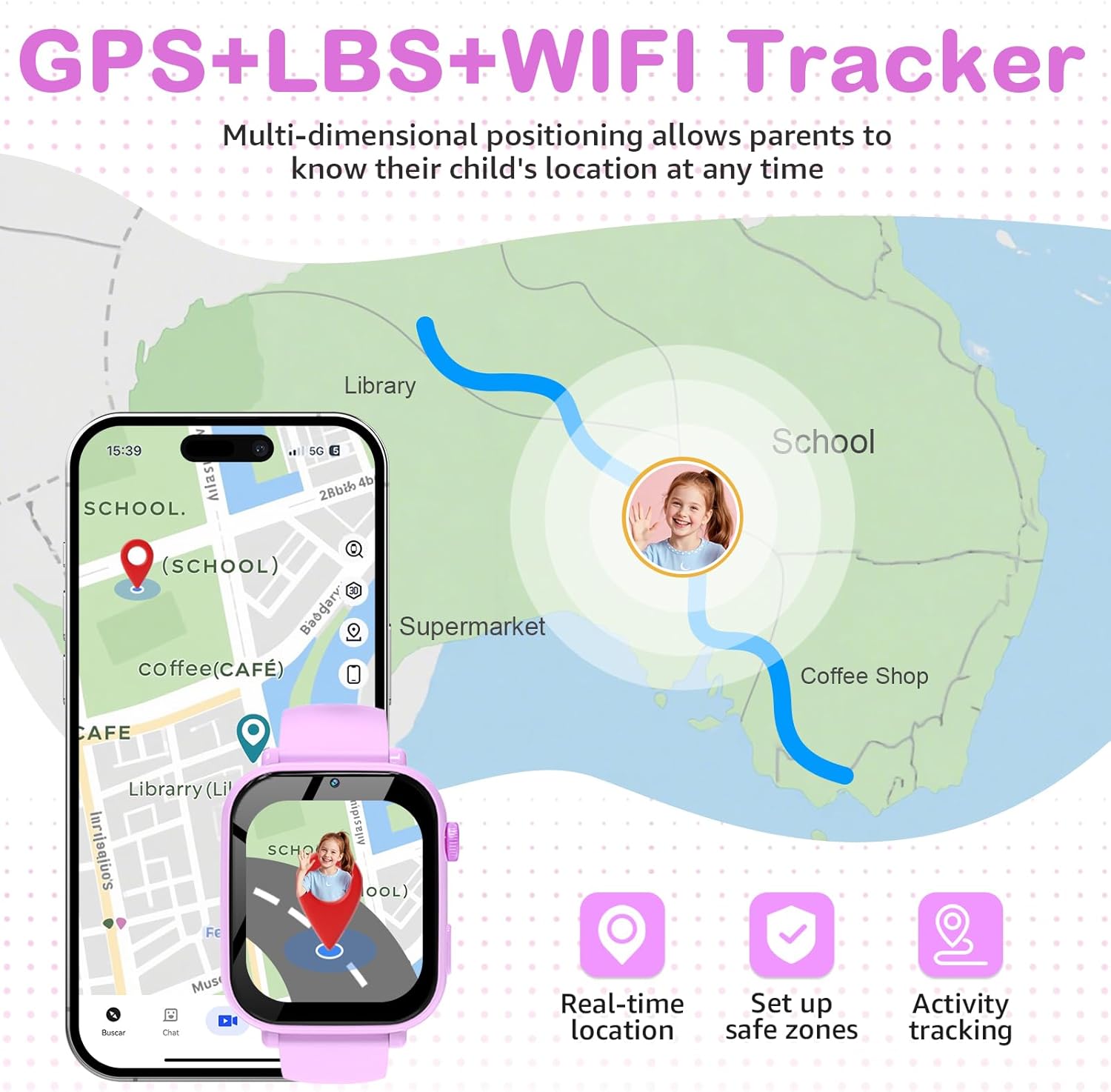 4G смарт часовник за деца, детски телефон с GPS, WiFi, SOS, телефон/видео разговори/гласов чат, училищен режим, будилник, крачкомер, игри, детски смарт часовник за момчета и момичета 4-12 години, подарък