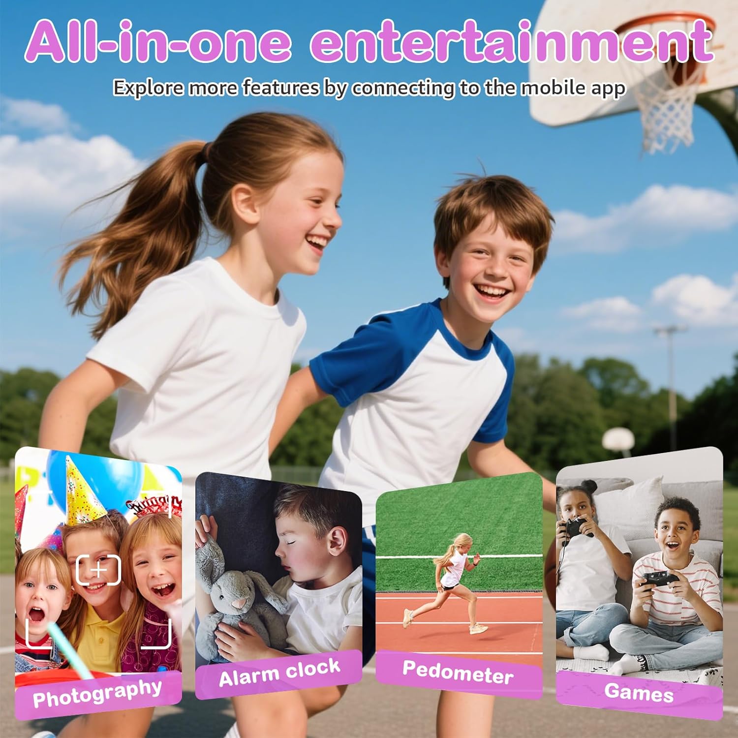 • Идеален подарък за деца: този детски часовник има вграден будилник и хронометър, които насърчават чувството за време и регулираното ежедневие. Педометърът записва ежедневните дейности и насърчава здравословните навици. С камерата можете да заснемате ежедневието си. Освен това, различни образователни игри насърчават логическото мислене. В сравнение с телефон, той е идеален подарък за деца за рождени дни, Коледа и други празници.