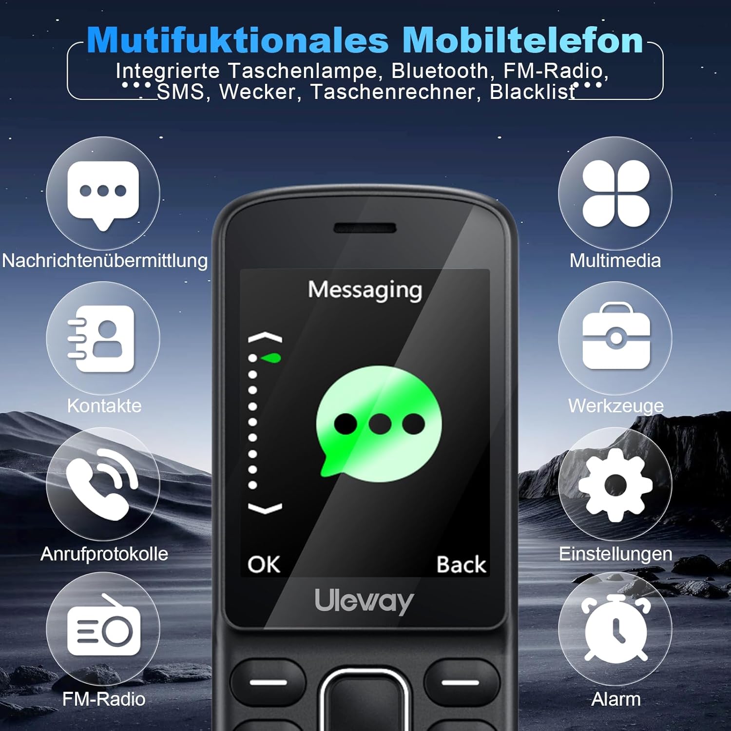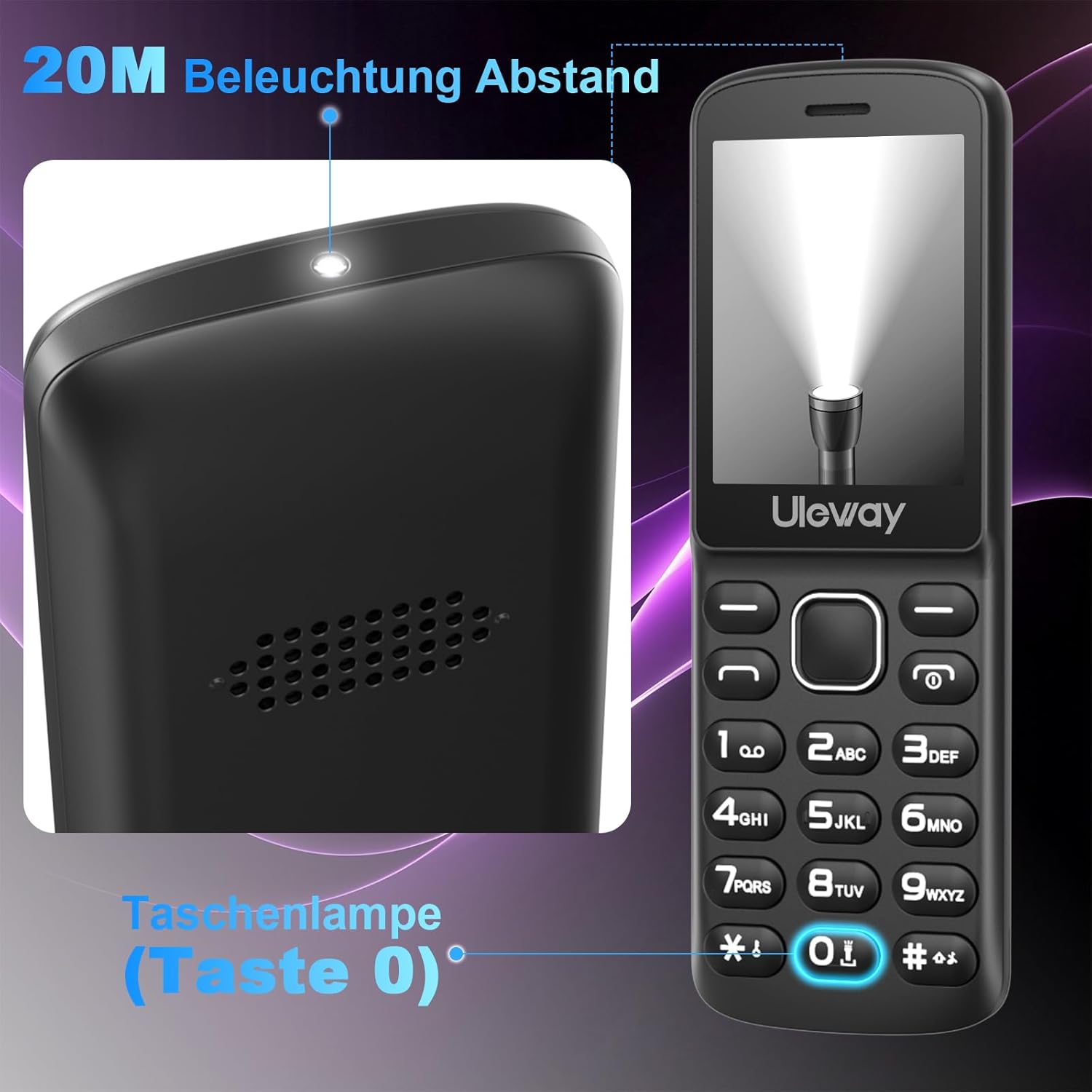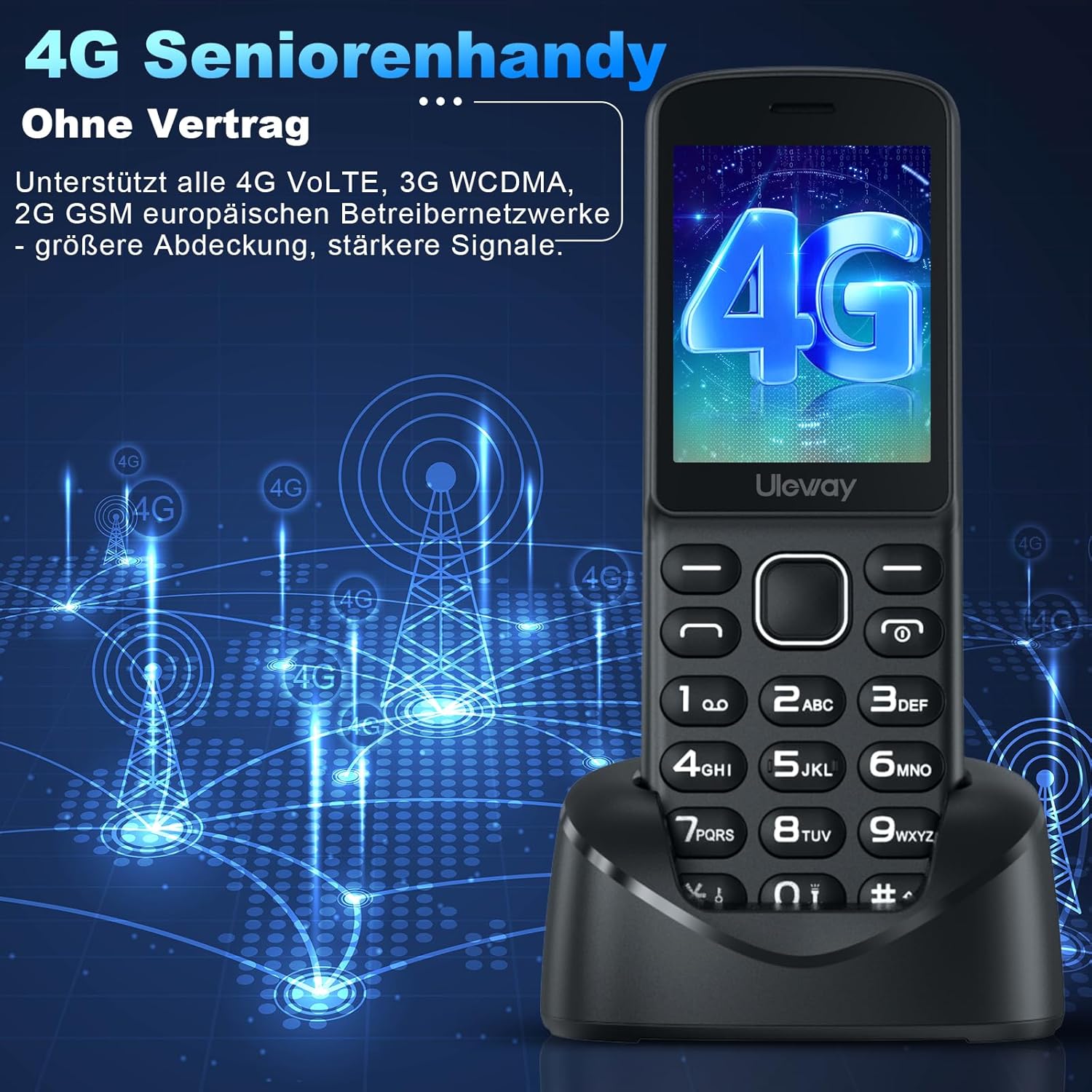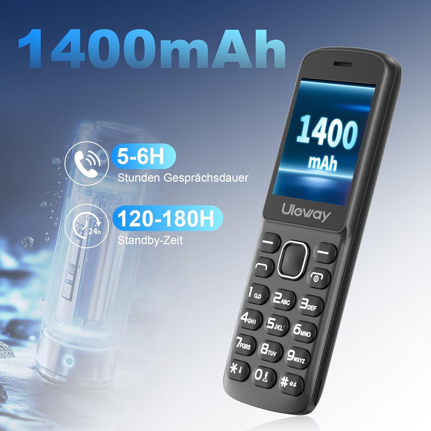 • Мобилен телефон за възрастни без договор 4G: uleway T1208 е съвместим с всички европейски 2G/3G/4G мрежи (напр. O2, EE, Vodafone, Orange, Three, ID Mobile, Smarty) и използва nano SIM карта. Без месечни такси - просто изберете подходящия план от предпочитания от вас доставчик.