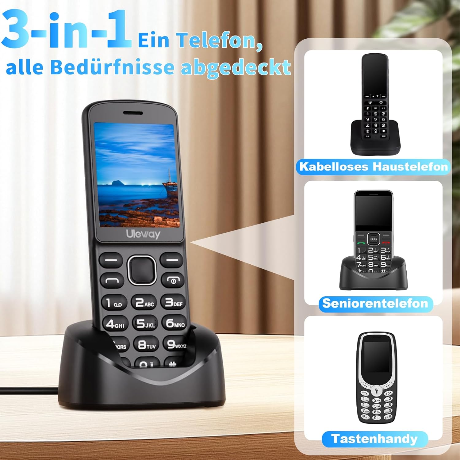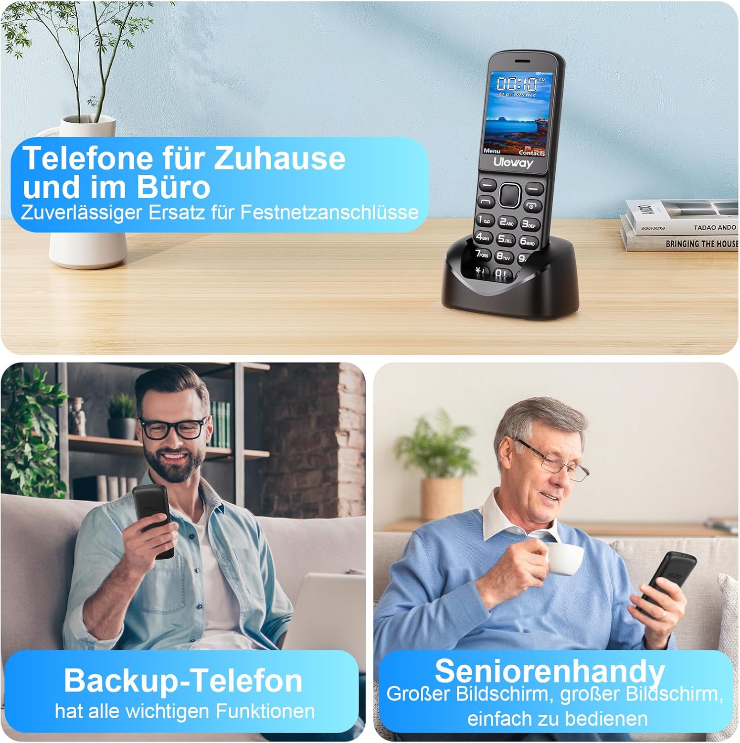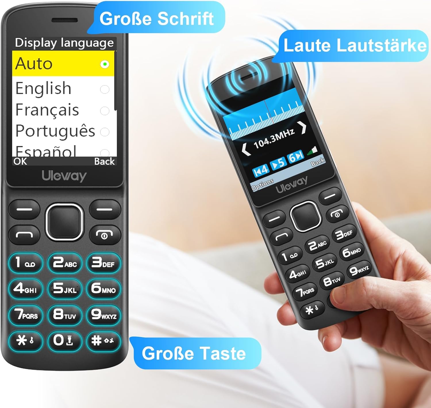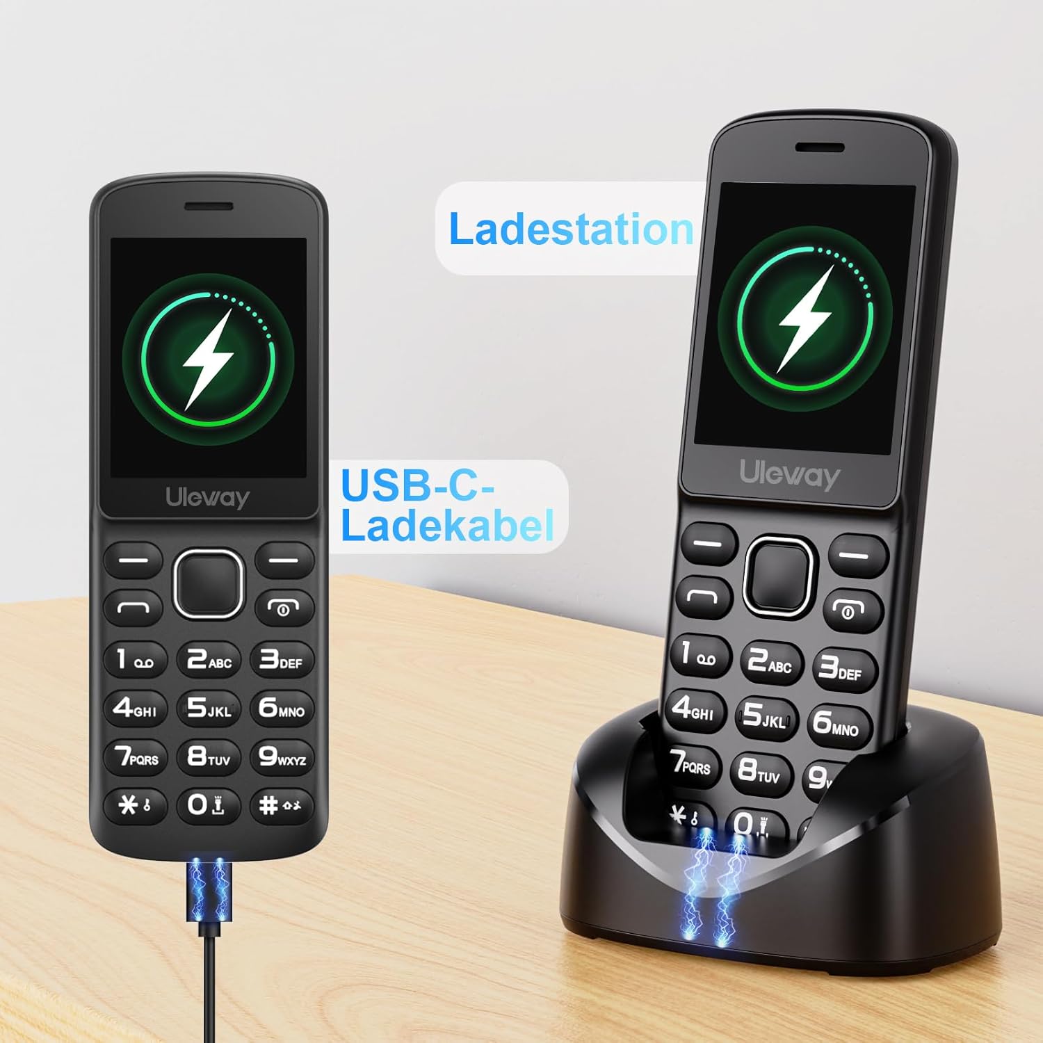• Мобилен телефон за възрастни без договор 4G: uleway T1208 е съвместим с всички европейски 2G/3G/4G мрежи (напр. O2, EE, Vodafone, Orange, Three, ID Mobile, Smarty) и използва nano SIM карта. Без месечни такси - просто изберете подходящия план от предпочитания от вас доставчик.