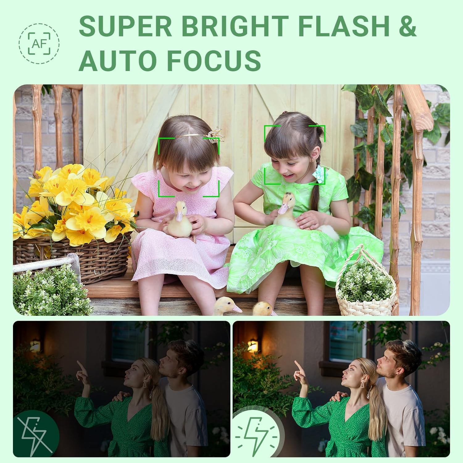 • Компактен, преносим, ​​идеален за пътуване и напълно оборудван: Този малък, преносим цифров фотоапарат е идеален за пътуване или ежедневна употреба и може лесно да се съхранява в чантата ви. Предлага се с 32GB SD карта, батерия и кабел за зареждане Type-C. 2,8-инчовият IPS дисплей осигурява удобен за потребителя интерфейс, така че можете бързо да преглеждате, редактирате и споделяте снимки. Идеален за подарък или за документиране на живота ви.