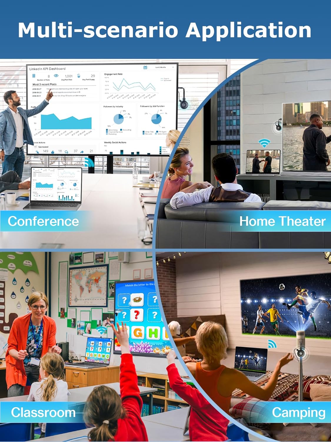 • 2025 подобрен 4K адаптер: следващото поколение безжичен HDMI адаптер от DRYMOKINI предлага предаване с ниска латентност и оригинален 4K @ 30Hz изход. Съвместим с iOS, Android, Windows и macOS, plug and play. Благодарение на технологията за подобряване на HDR, детайлите на изображението се възстановяват точно. Подходящ за различни сценарии, включително бизнес срещи, мобилни офиси, домашни кина, големи събирания и мултимедийно образование.