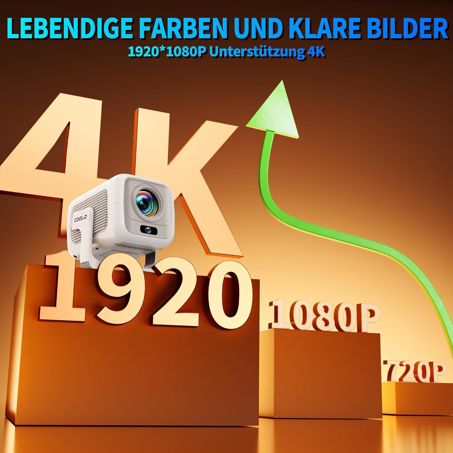 4K проектор Full HD 1080P, мини проектор с WiFi 6 и Bluetooth 5.4, видео проектор с поддръжка за автоматично фокусиране и трапецовидна корекция, с HDMI кабел и дистанционно управление, бял