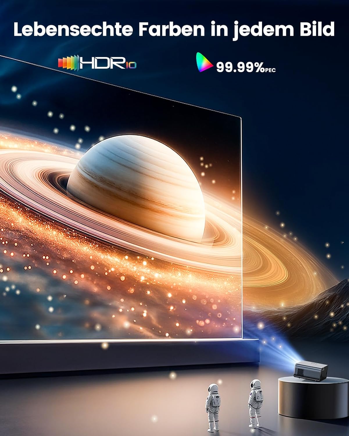 • Wide compatibility for a wide range of projection requirements: the smart projector 4K supports ceiling/table/tripod/wall mounting with four (M5 x 12 mm) screw holes or a central hole (M6) at the bottom. Equipped with HDMI ARC/CEC, USB and 3.5mm audio port, it can be easily connected to your phone, laptop, PS5, switch and more. The mini projector 4K is the perfect companion for movies, games, small meetings, camping, parties and learning.