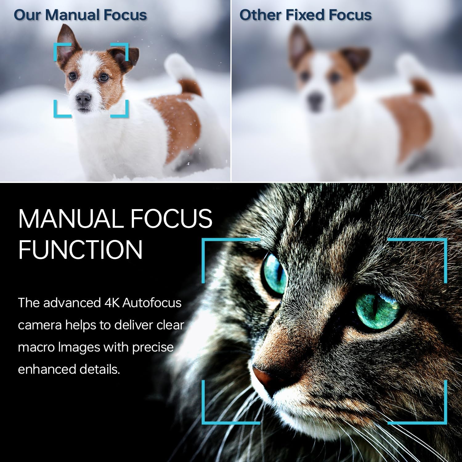• С широкоъгълен обектив и макро обектив: Оборудвана със сменяем 52 мм широкоъгълен обектив и макро обектив, тази 4K камера улавя широки хоризонти и малки детайли с лекота. Ръчният фокус гарантира резки снимки, а бутон отгоре позволява лесно превключване между режими на фото, видео и time-lapse фото.