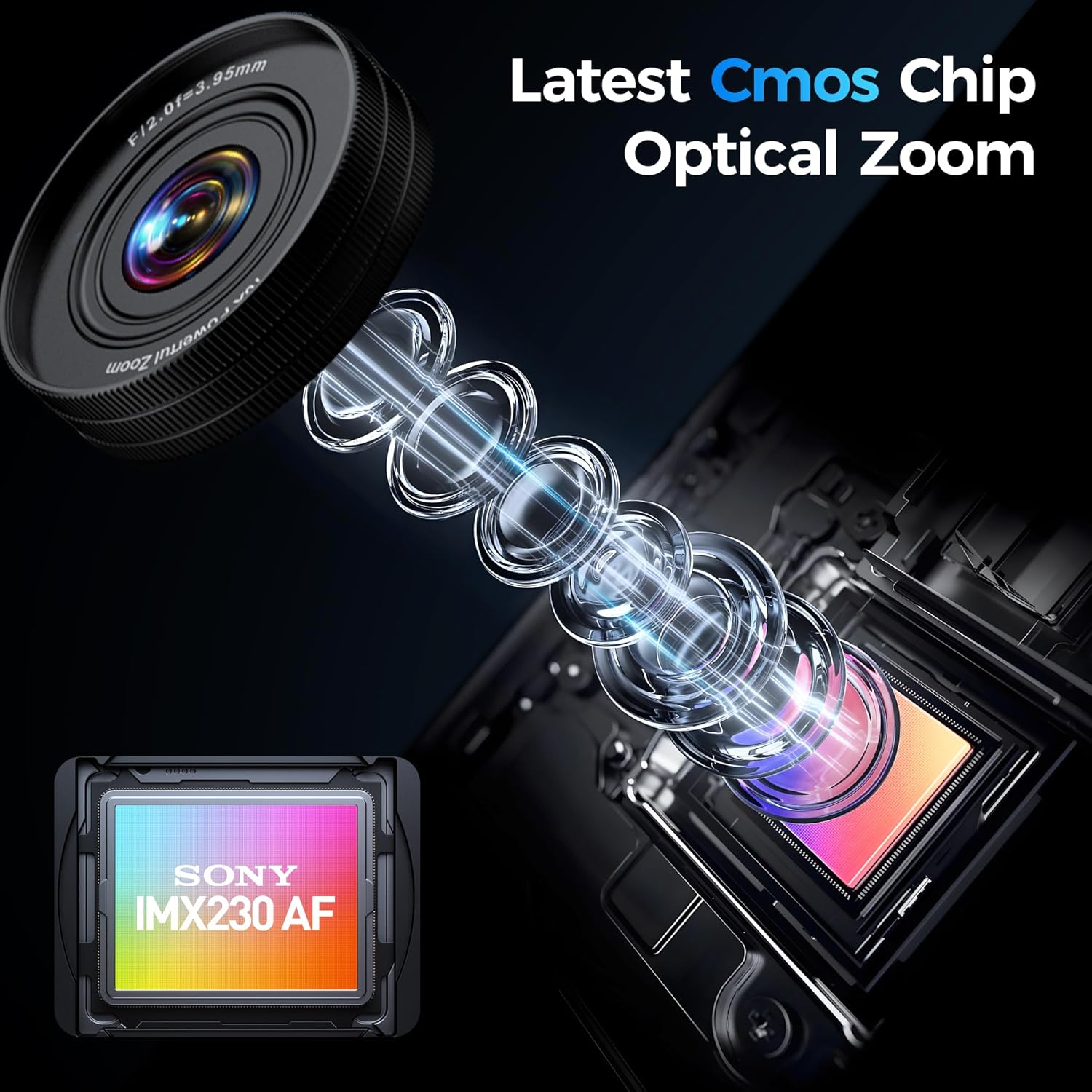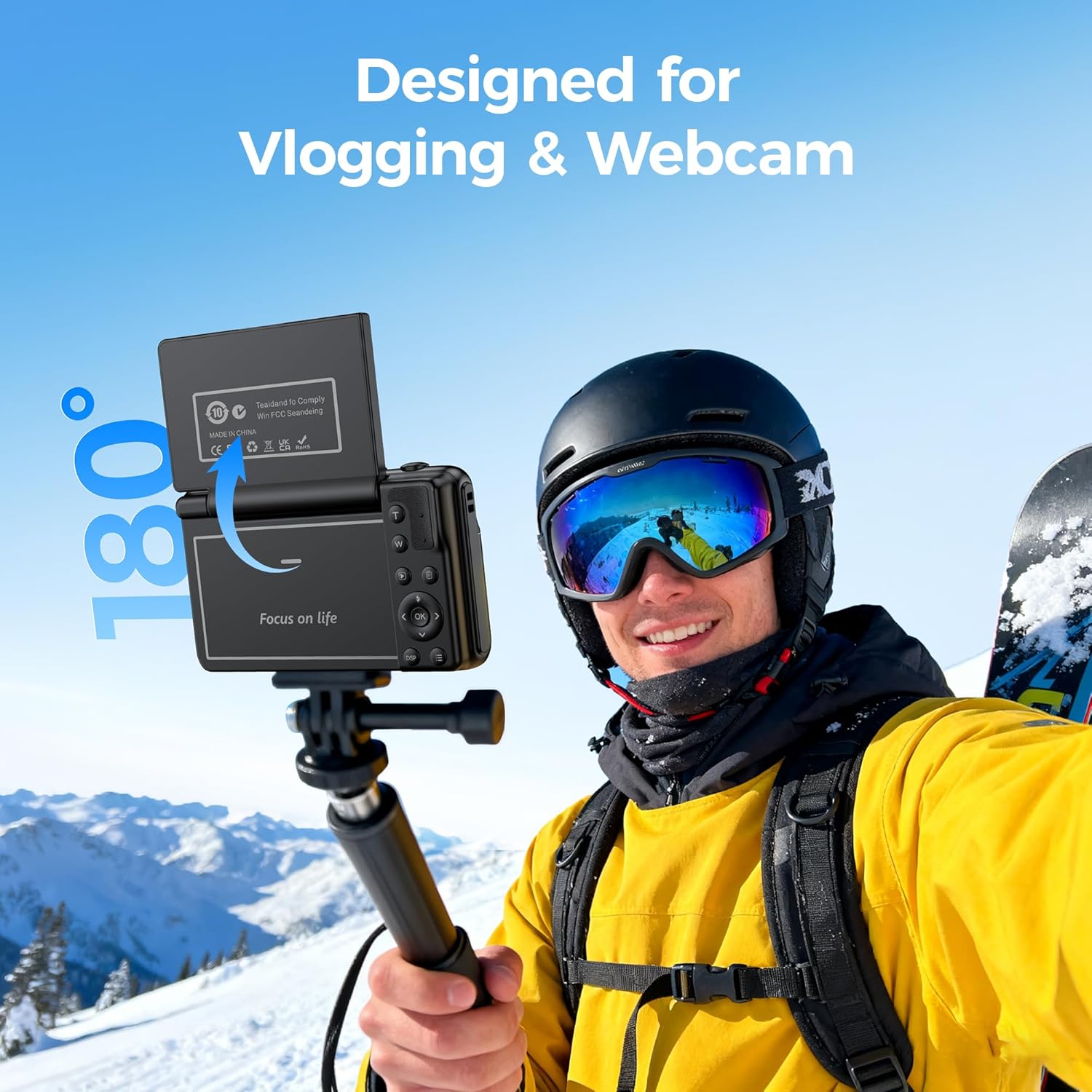 • Влог камера с 180° обръщащ се екран: идеална за YouTube видеоклипове и публикации в TikTok: 180° обръщащият се дисплей винаги ви показва как изглеждате на снимката. Автоматичният фокус и режимът за красота автоматично изглаждат тоновете на кожата с 12 филтъра. Изглаждането на кожата осигурява перфектни автопортрети. Дори когато ходите, вашите видеоклипове остават плавни. За влогъри: Вашето мобилно видео студио