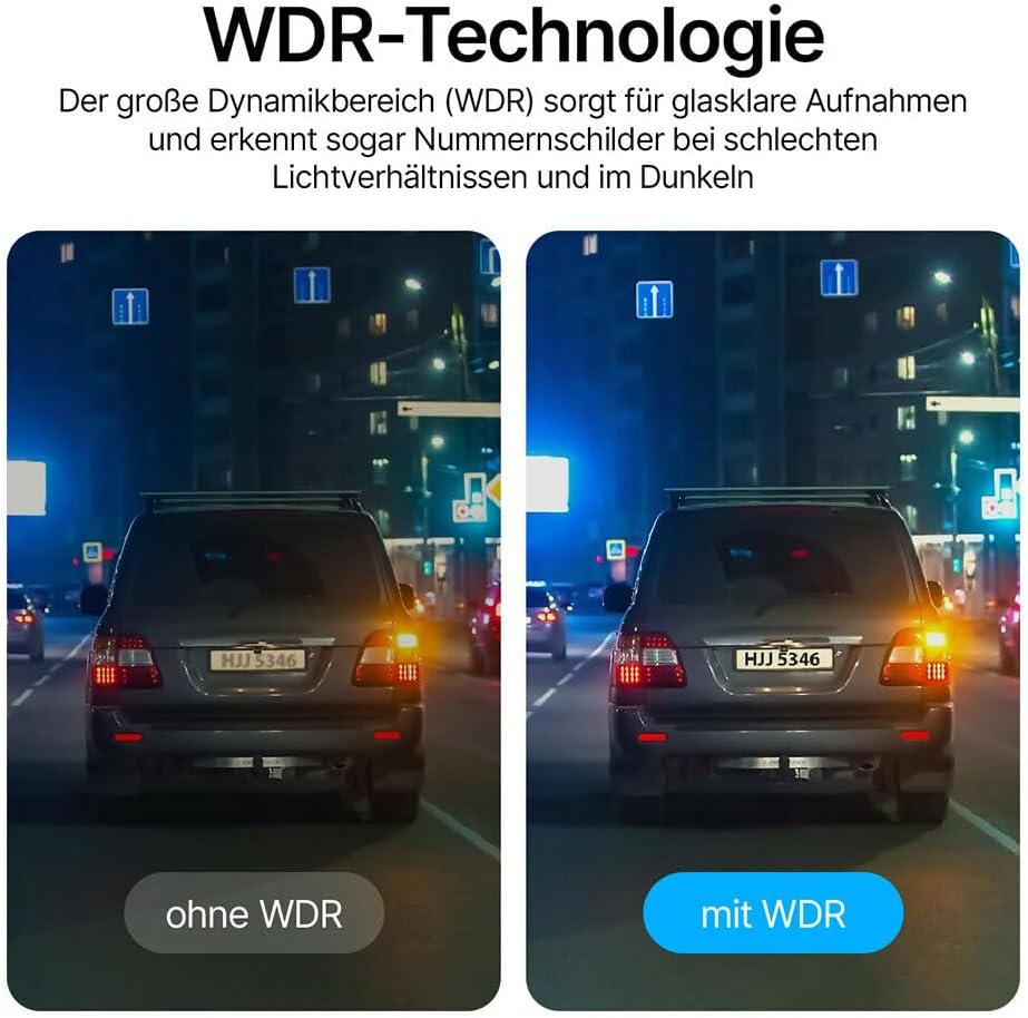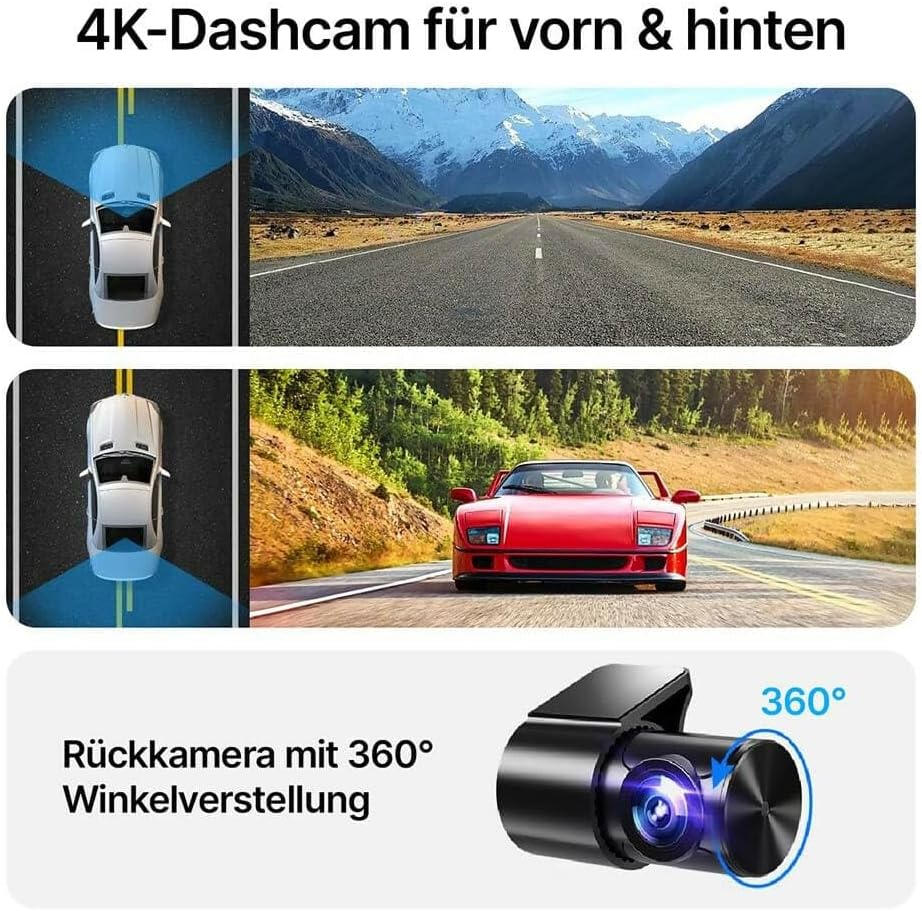 Кристално ясна 4K резолюция: Видеорегистраторът записва в зашеметяваща 4K Ultra HD (3840x2160P) резолюция с предната камера и в 1080P резолюция със задната камера. Това ви осигурява изключително ясни видеоклипове от всяко шофиране, дори при условия на слаба светлина, благодарение на вградената функция за нощно виждане. Всеки детайл е надеждно заснет, така че винаги имате ясни записи, дори в тъмна среда.