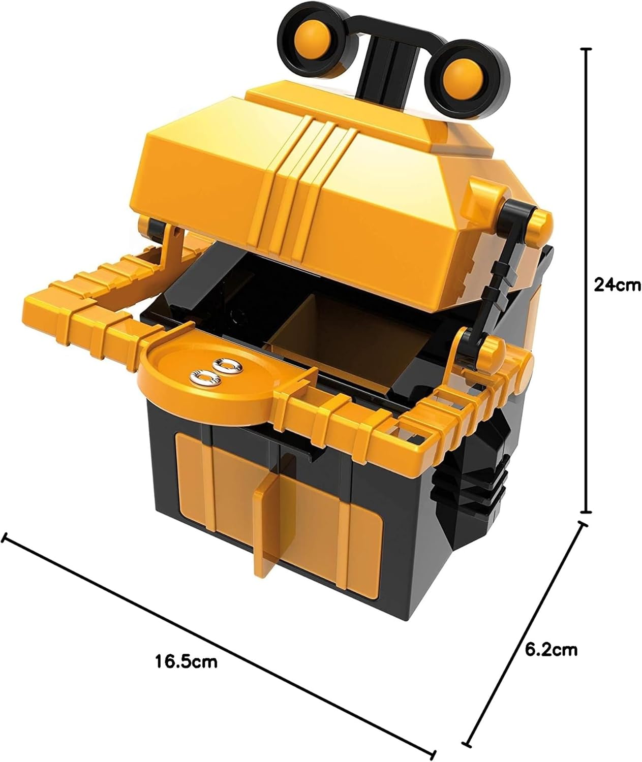 Дайте на робота-касичка монета и той я глътна от челюстите си с едно щракване. Всички си представяме различна картина, когато мислим за робот. Тази роботизирана касичка учи децата на механично проектиране. Подходяща за деца над 8 години. Изисква 1 x AA батерия (не е включена).