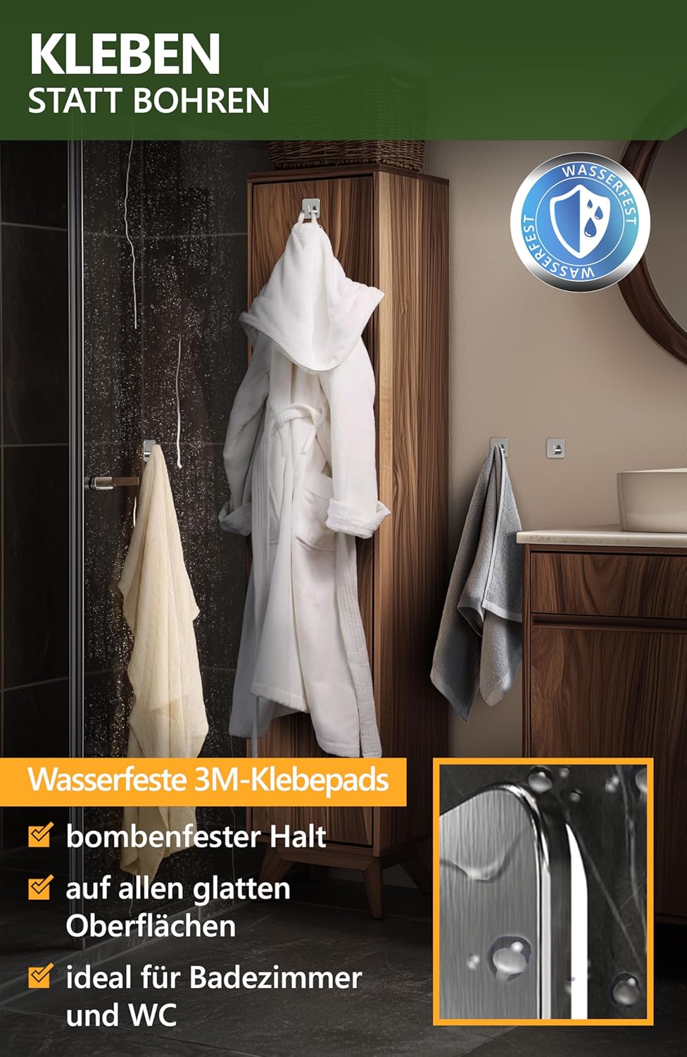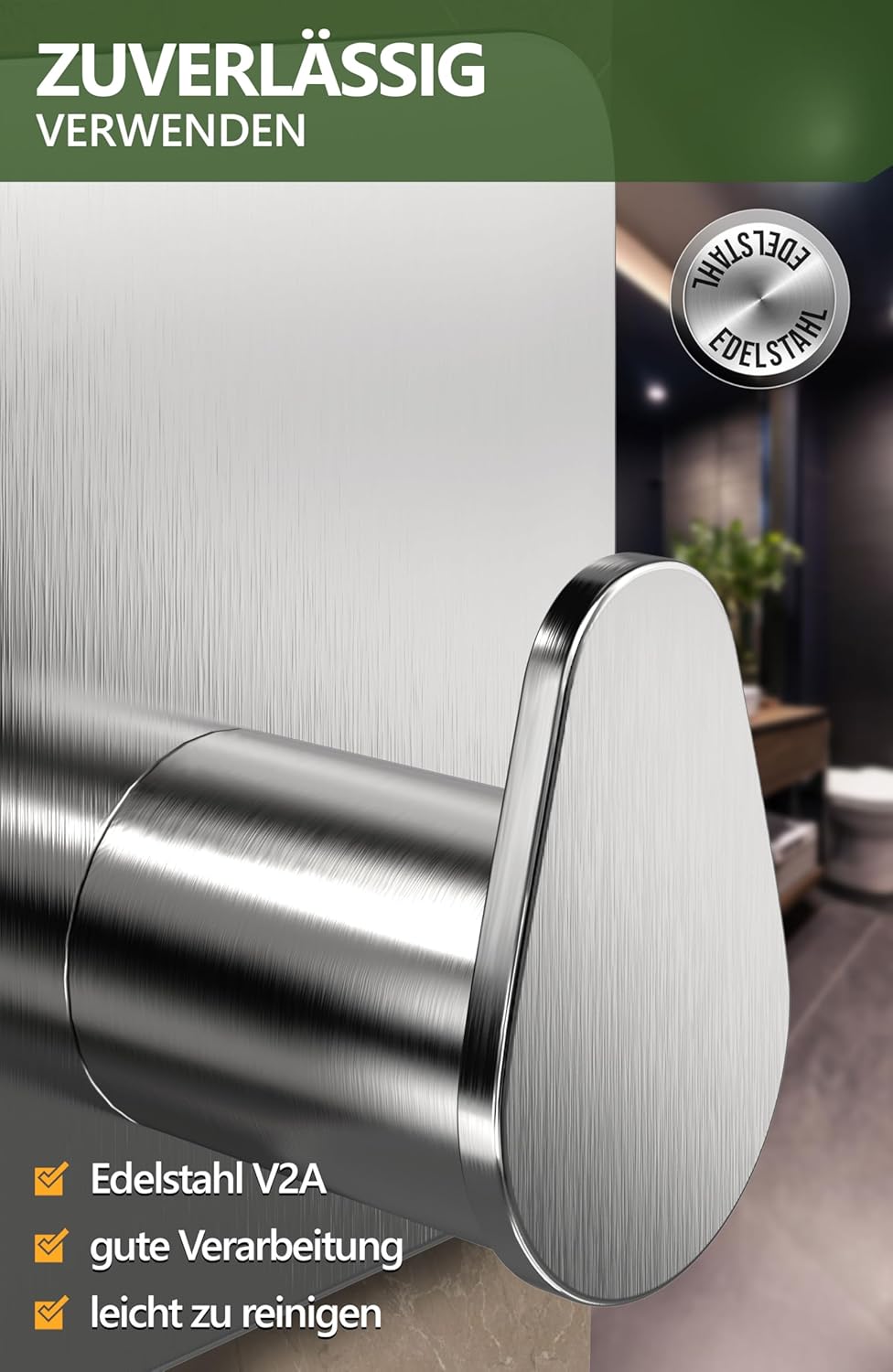 • Надеждна употреба: издръжливи куки за кърпи без пробиване, изработени от неръждаема стомана V2A и добра изработка; двойно устойчиви на ръжда, лесни за почистване