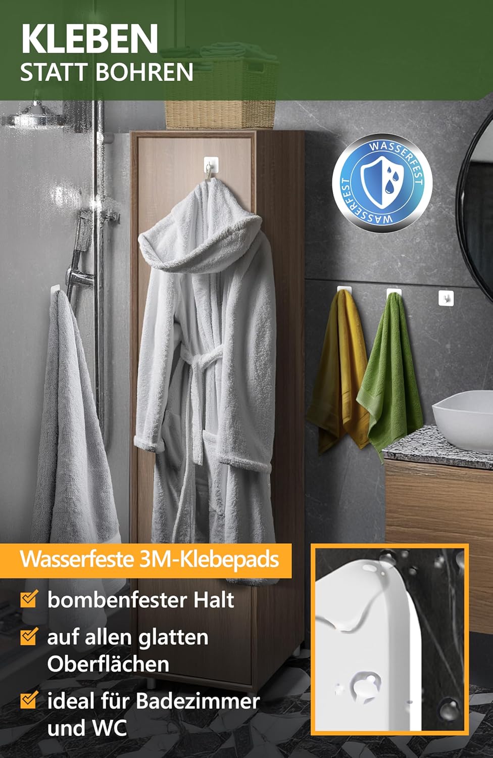 • Надеждна употреба: издръжливи куки за кърпи без пробиване, изработени от неръждаема стомана V2A и добра изработка; двойно устойчиви на ръжда, лесни за почистване