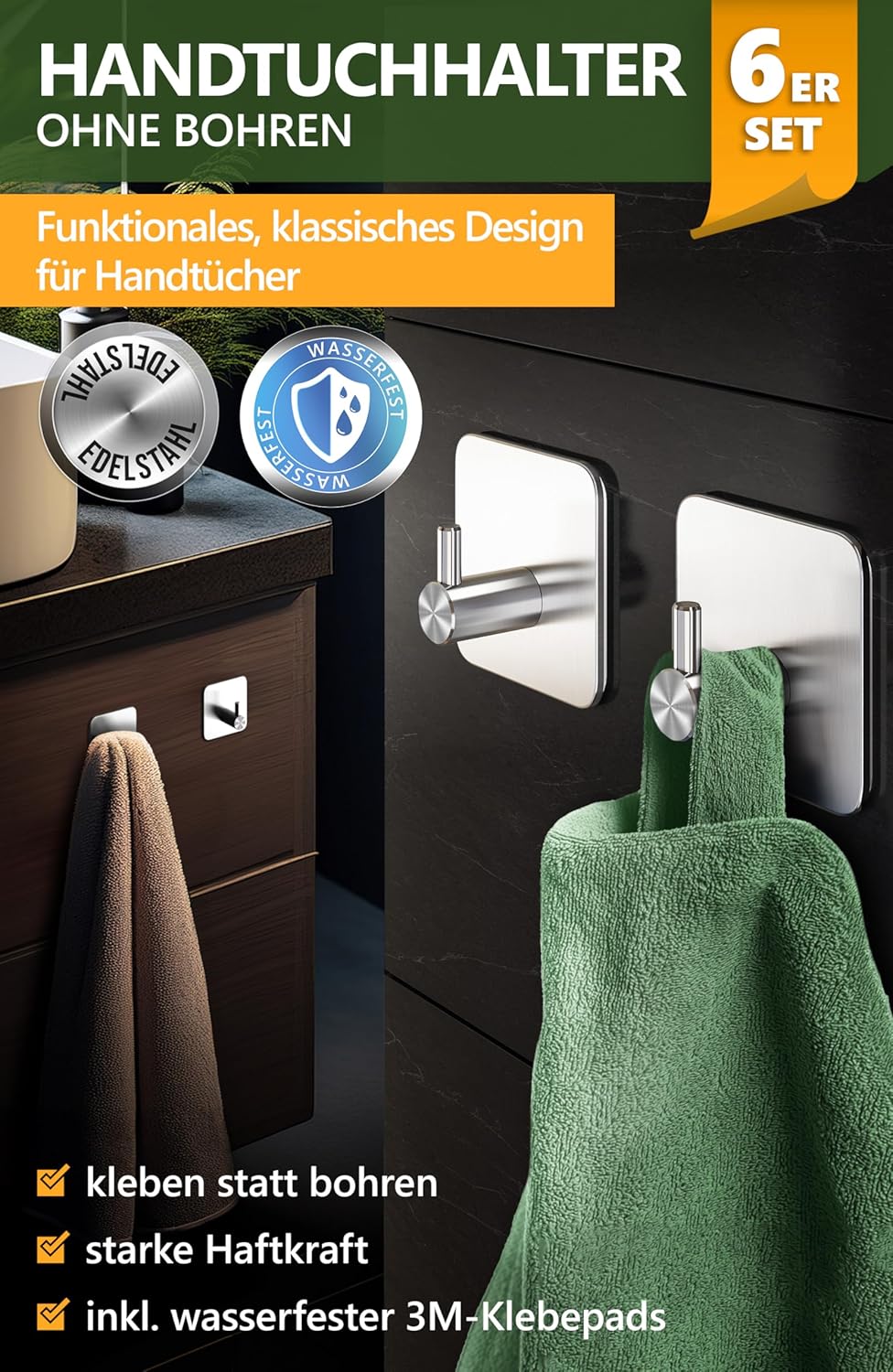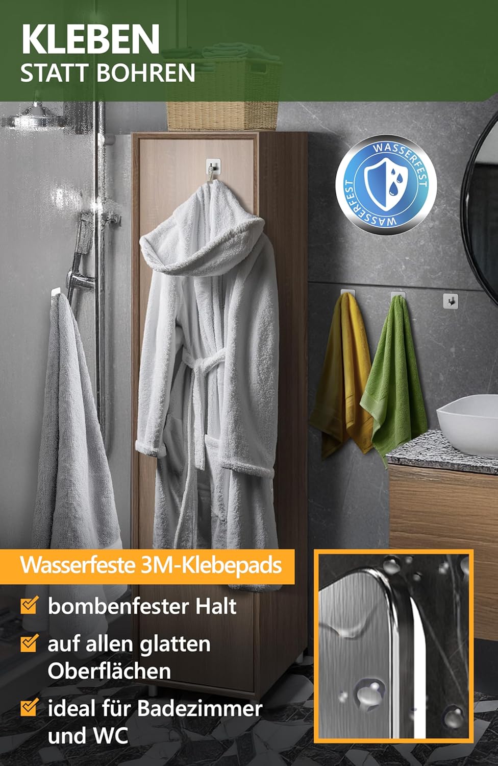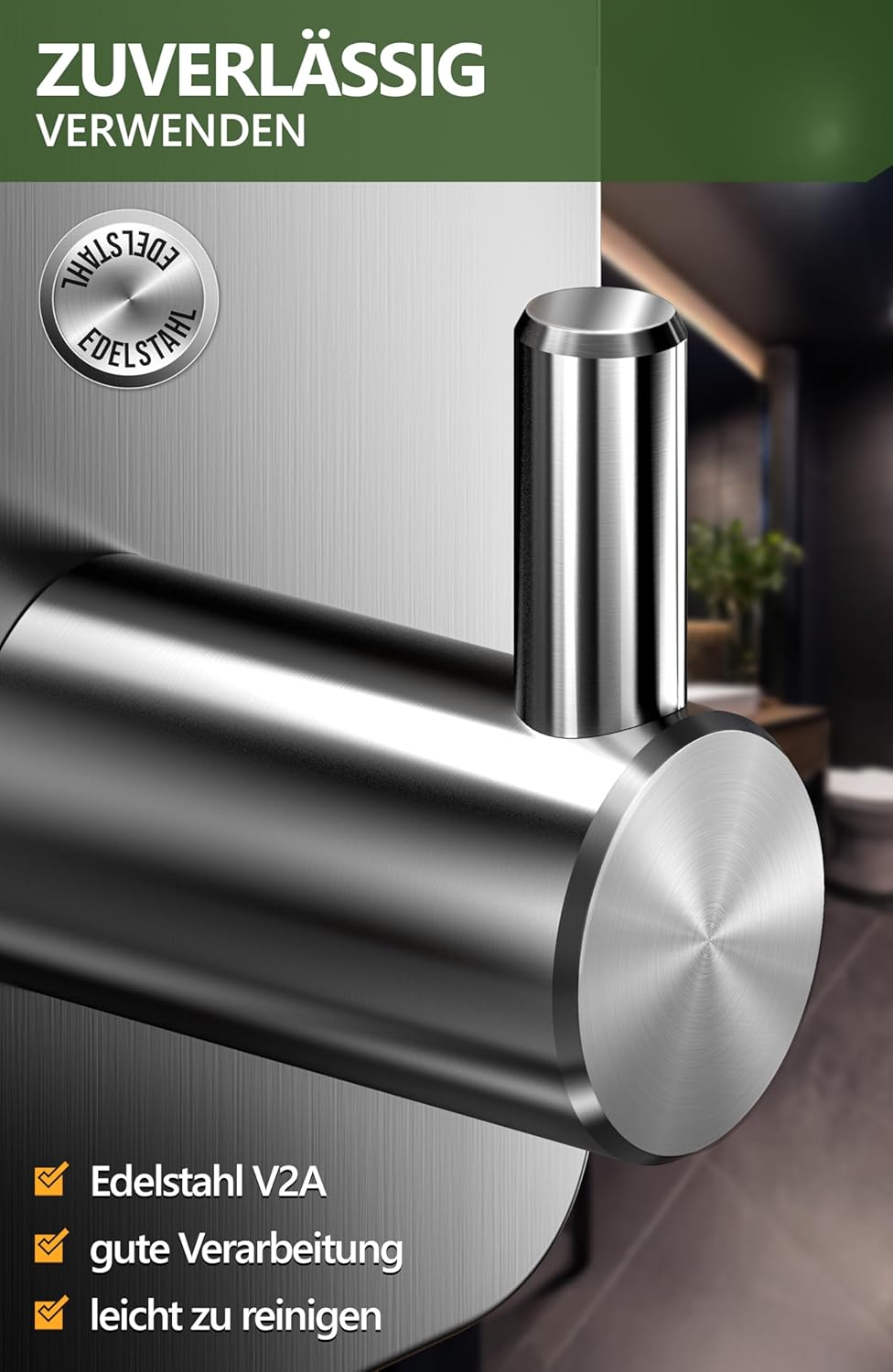 • Надеждна употреба: издръжливи куки за кърпи без пробиване, изработени от неръждаема стомана V2A и добра изработка; двойно устойчиви на ръжда, лесни за почистване