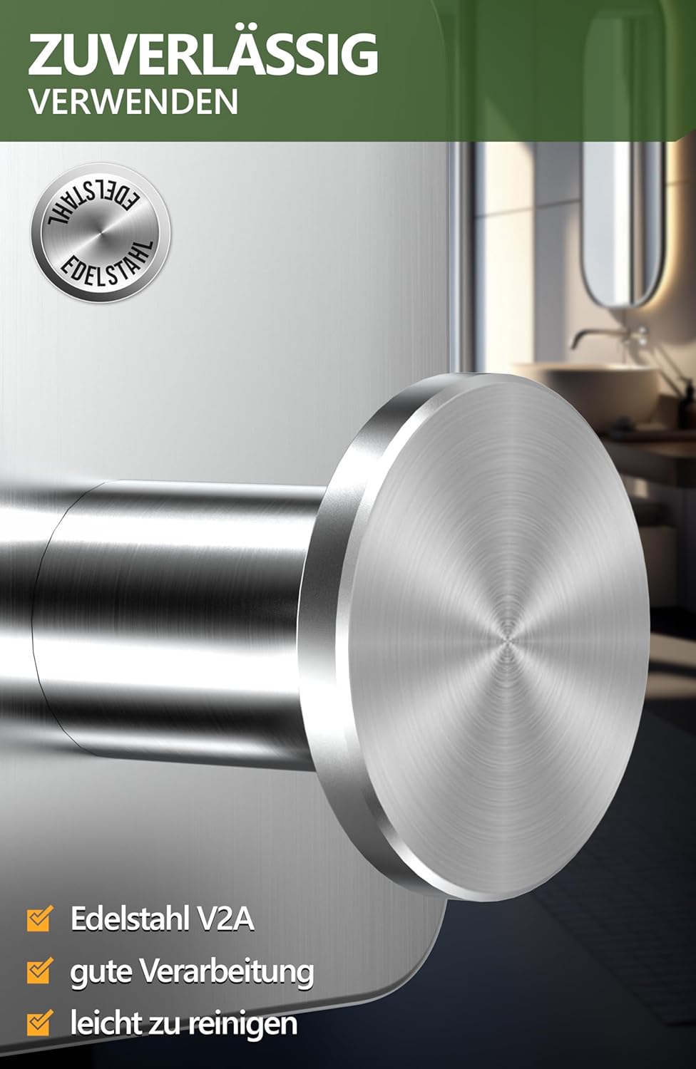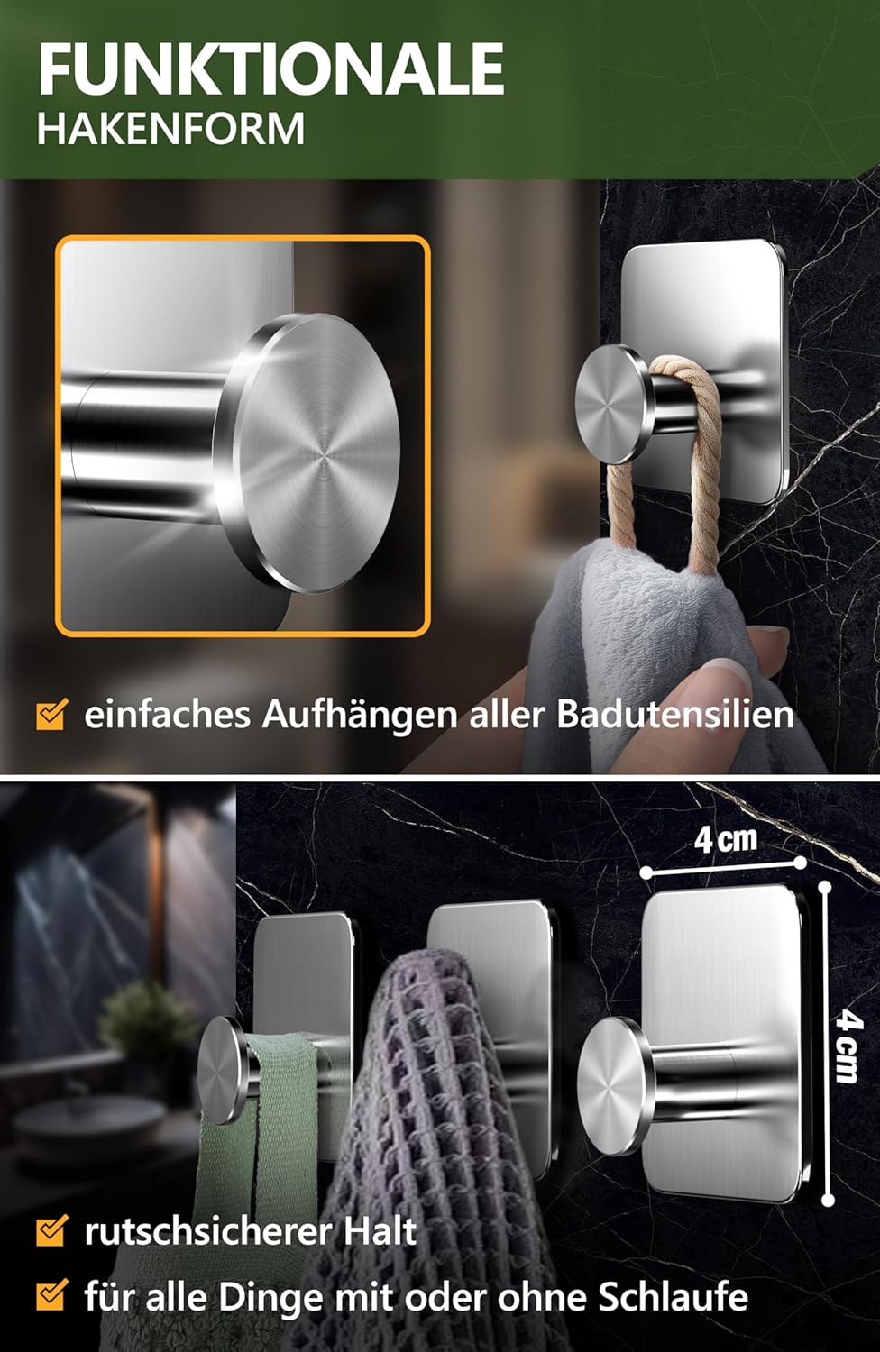 • Надеждна употреба: издръжливи куки за кърпи без пробиване, изработени от неръждаема стомана V2A и добра изработка; двойно устойчиви на ръжда, лесни за почистване