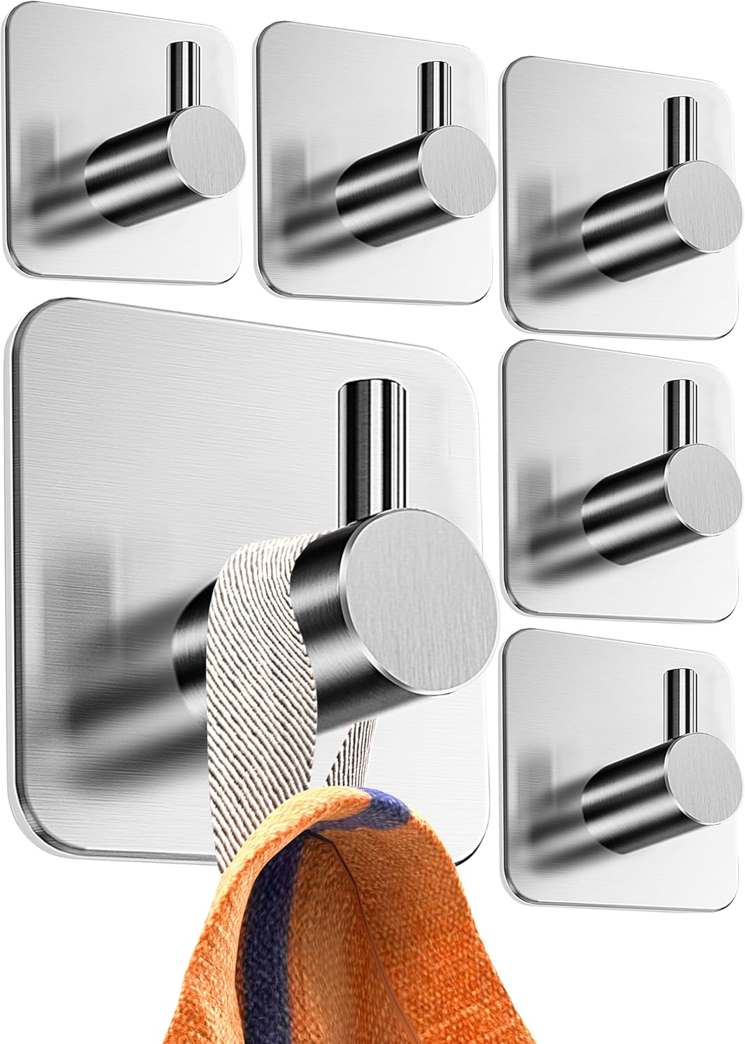 4smile Поставка за кърпи за баня, без необходимост от пробиване, комплект от 6, сребриста - Поставка за кърпи за баня, изработена от неръждаема стомана, модерни самозалепващи се куки, висока товароносимост - водоустойчиви куки за баня, самозалепващи се кърпи