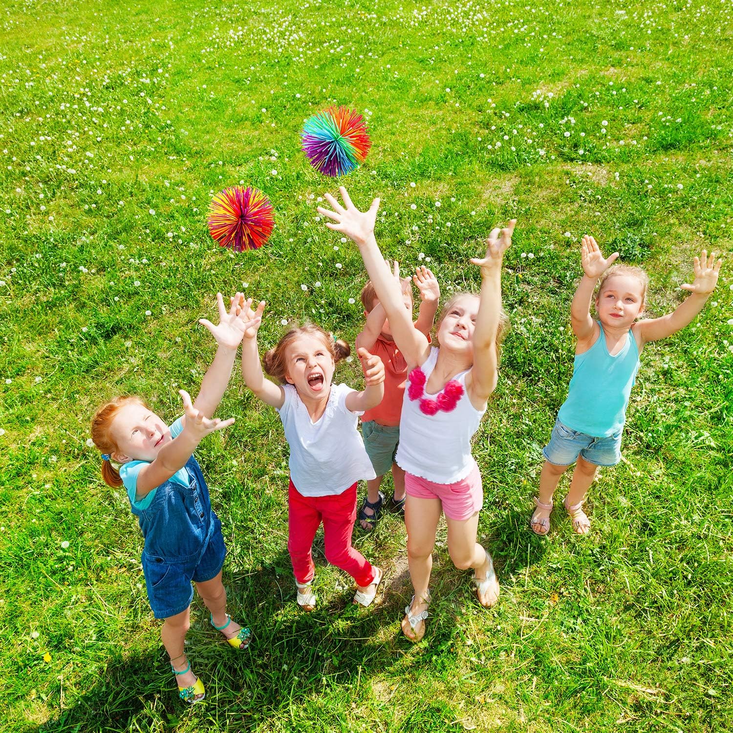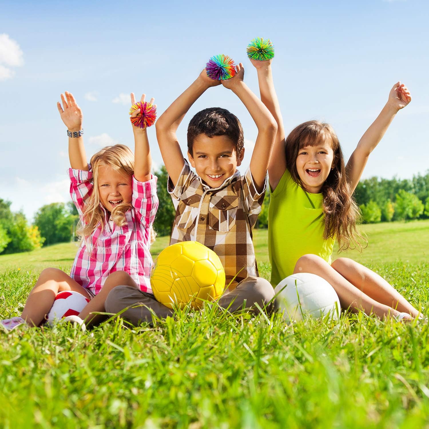 Ще получите 5 броя стрес топки с помпони с дъгови цветове с диаметър 2,75 инча, които да споделите със семейството и приятелите си.