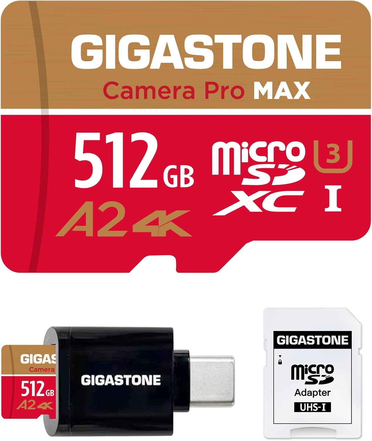 [5 години безплатно възстановяване на данни] Gigastone 4K Camera Pro 512GB MicroSDXC карта памет и SD адаптер, съвместима с GoPro Drone Switch, скорост 100MB/s, A2 U3 V30 Micro SD карта