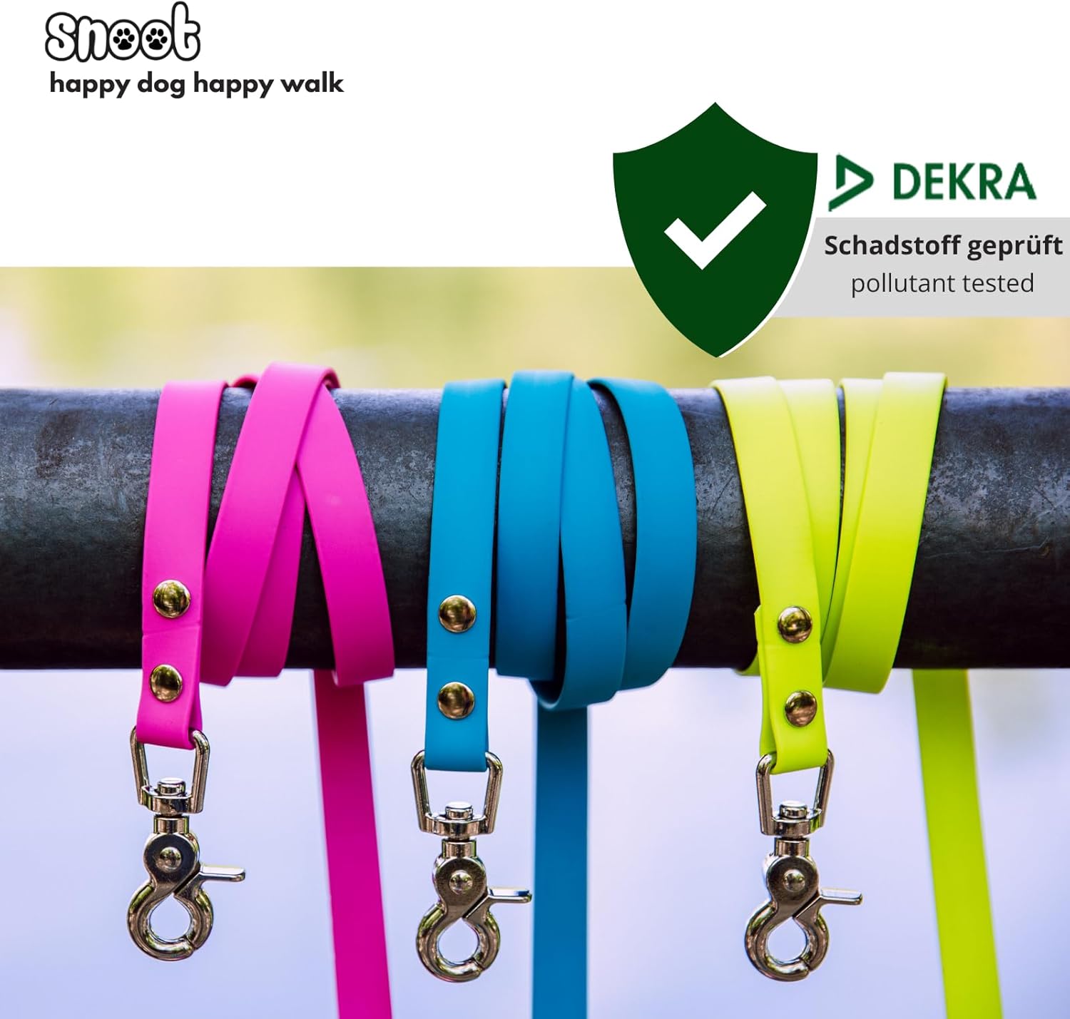 As in almost all flexible rubber-like materials, a harmless amount of plasticisers are also used in our TPU coating according to the standards. Taking into account the use with animals, we test our leads for toxic substances in addition to the general European product guidelines and according to DIN 71 toy safety.
