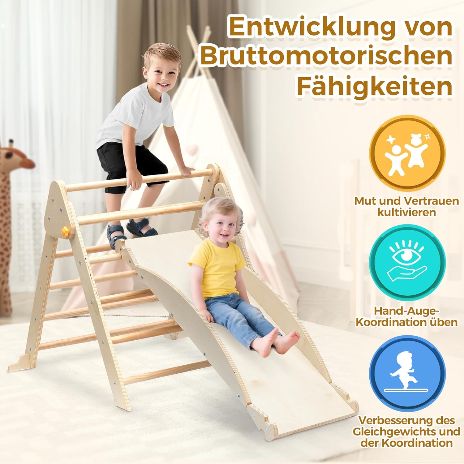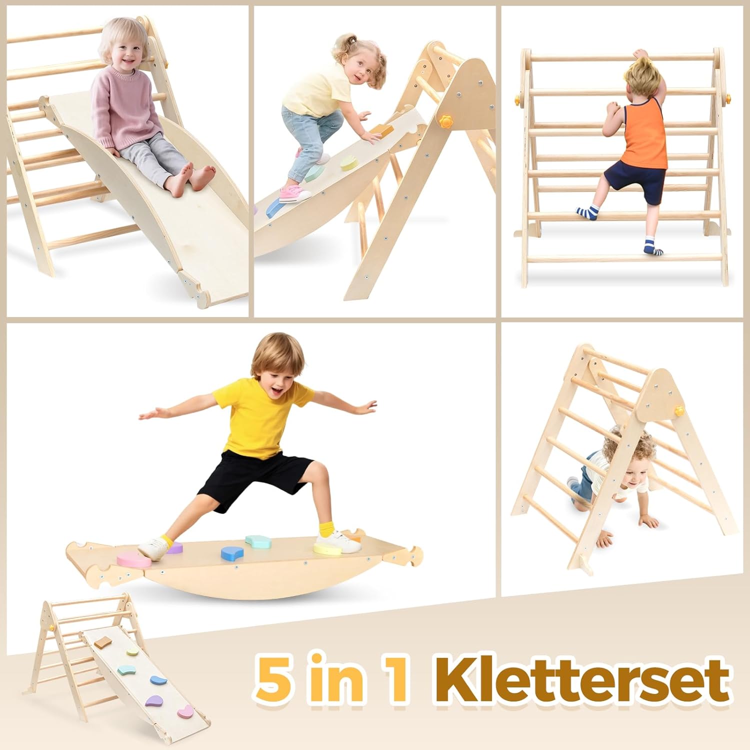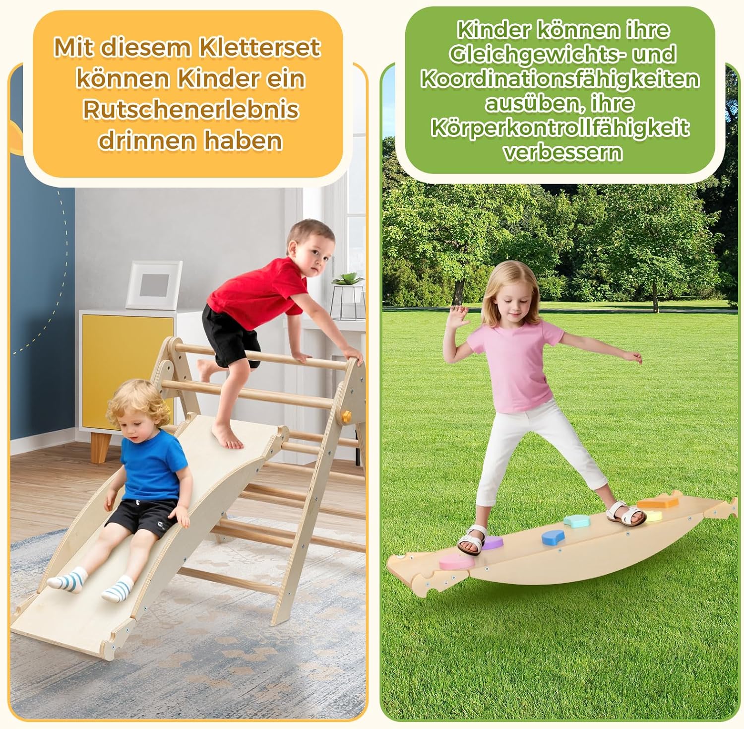 • 【Многофункционален комплект за катерене】 Децата могат да се катерят по триъгълната катерушка, а дългата дъска може да се използва като пързалка или накланящ се трион. Този комплект за катерене предлага множество възможности за игра за вашите деца.