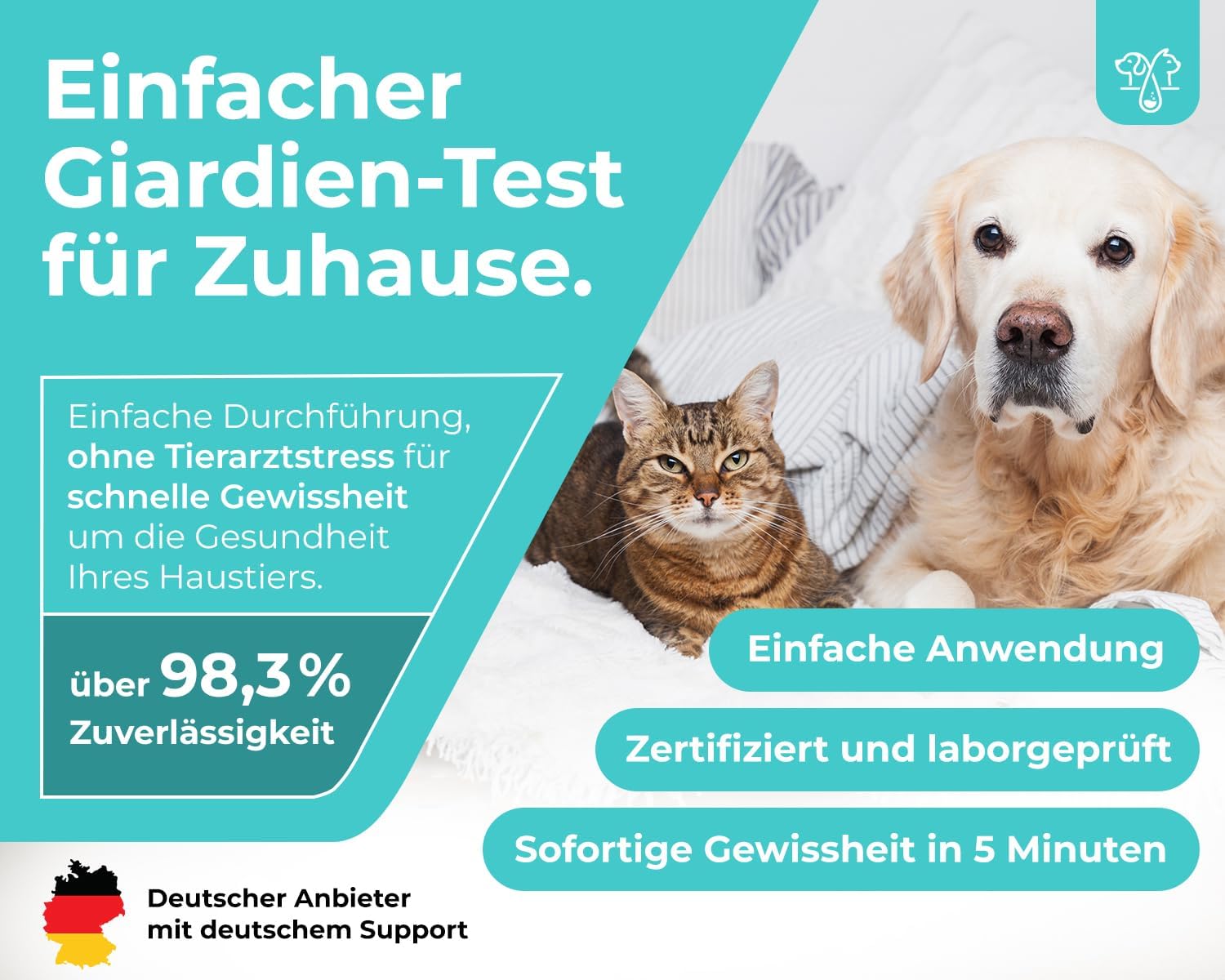 Бързият тест е подходящ за кучета и котки. Може да се използва надеждно и при кученца и млади животни.