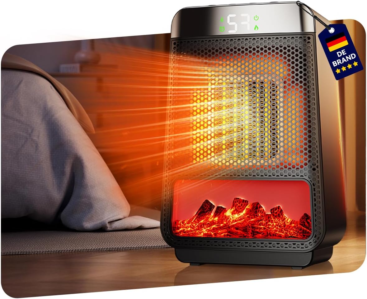 • Топлинна мощност № 1 - SPD сертификация: PTC керамичен нагревател: най-нов мини вентилаторен нагревател с дизайн, наподобяващ камина, с усъвършенствана PTC керамична технология за отопление. Високоефективен електрически къмпинг нагревател може да отдели силна топлина в рамките на 2 секунди. Оборудван с 2 режима на отопление (1200W/800W), той ви позволява без усилие да регулирате температурата в помещението в студени среди.