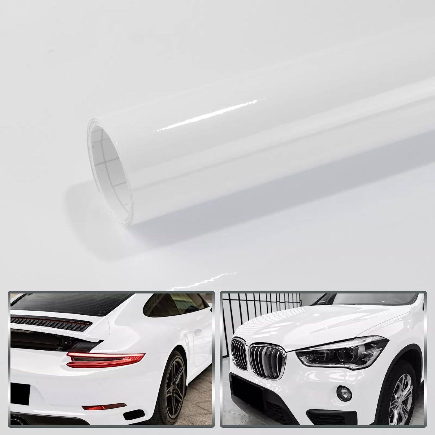50см x 150см гланцово фолио за автомобилно опаковане, самозалепващо фолио за автомобилно опаковане с въздушни канали, фолио без мехурчета за мотоциклети, велосипеди, „Направи си сам“ (гланцово бяло, 50см x 150см)