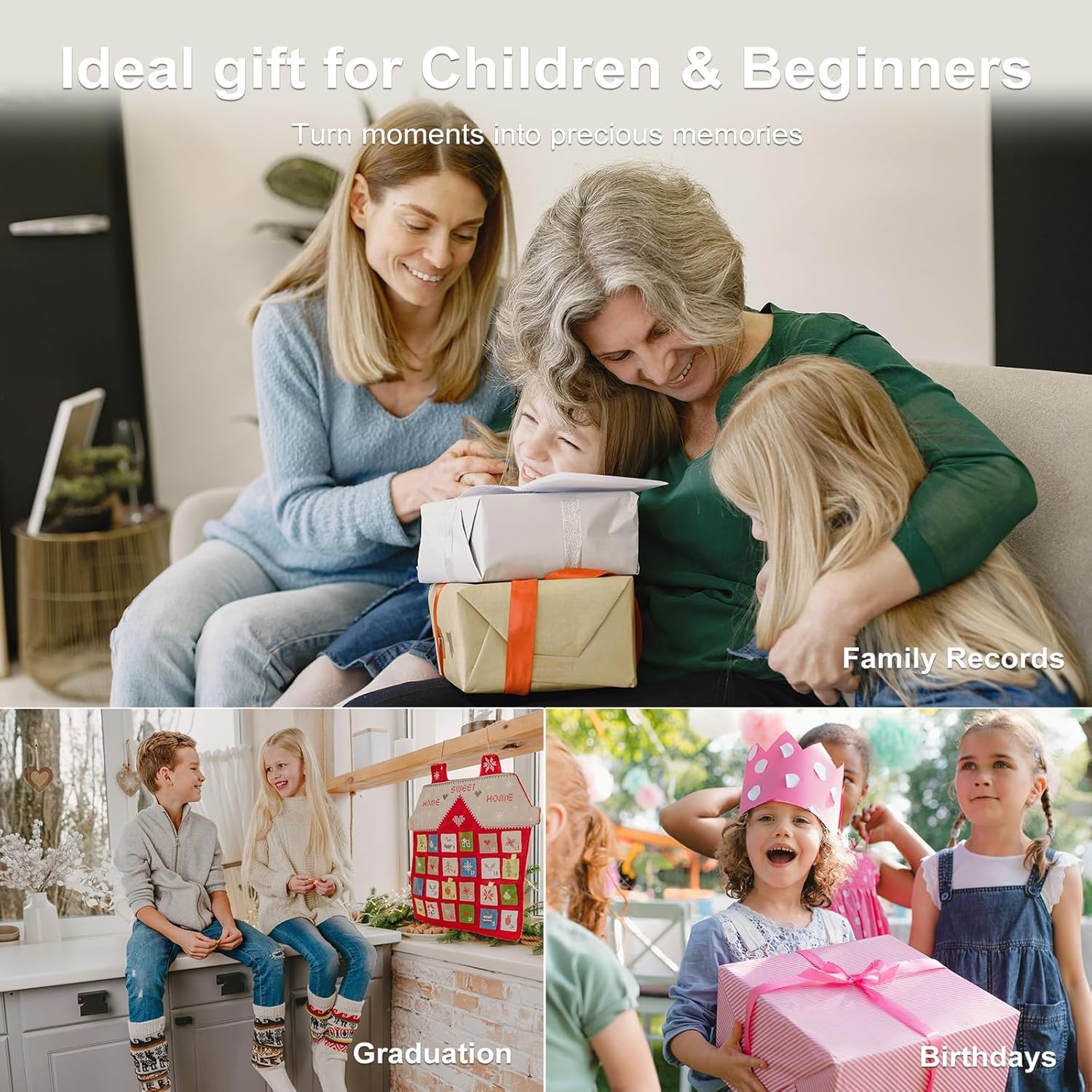 Не е за малки деца на възраст 2-3 години; Създадохме този 1080P цифров фотоапарат за деца и тийнейджъри на възраст 4-12 години.