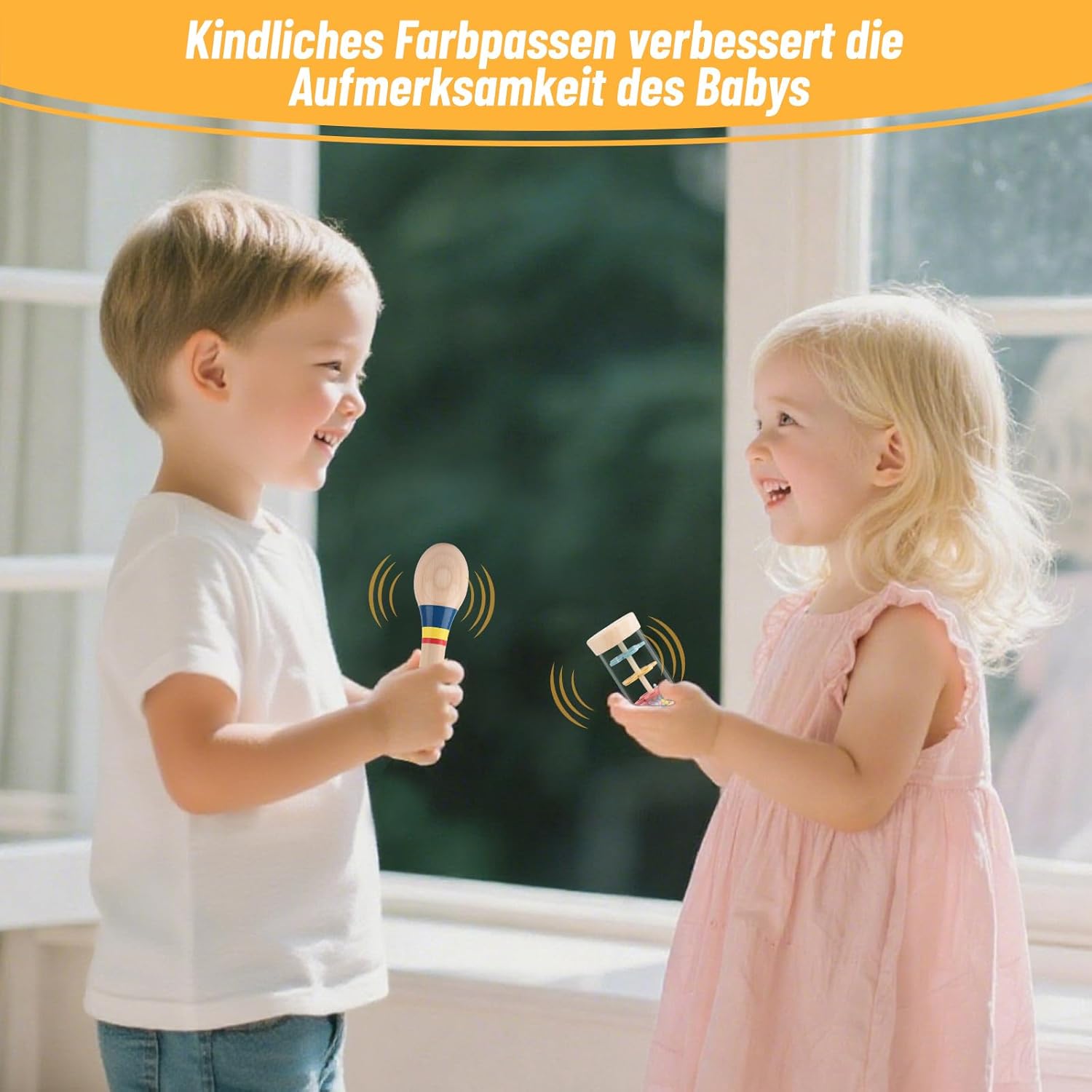 6 бр. Монтесори дървени бебешки дрънкалки - музикална дървена играчка, сензорна играчка Монтесори, подарък за музикален инструмент за момчета и момичета, подарък за рожден ден за деца и малки деца