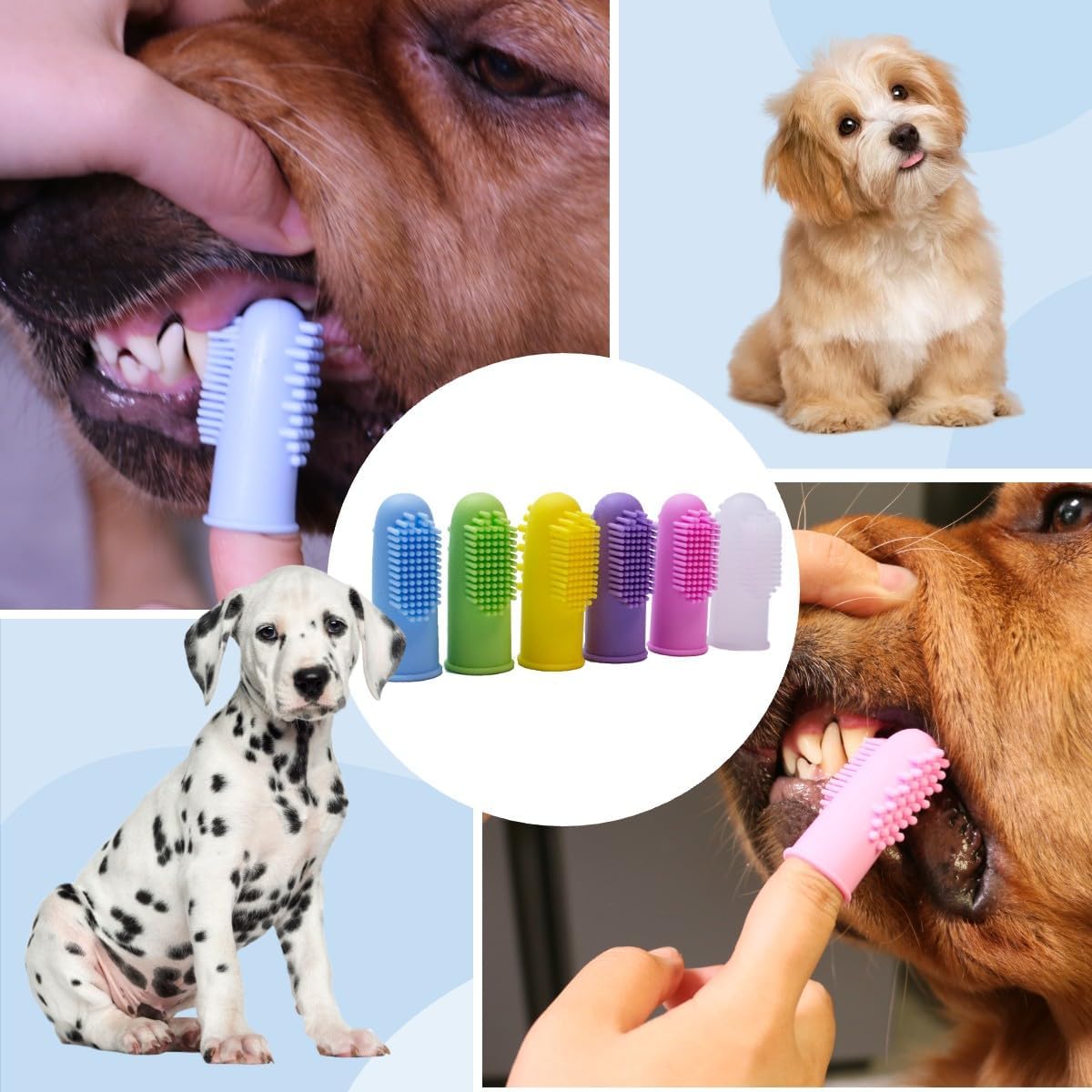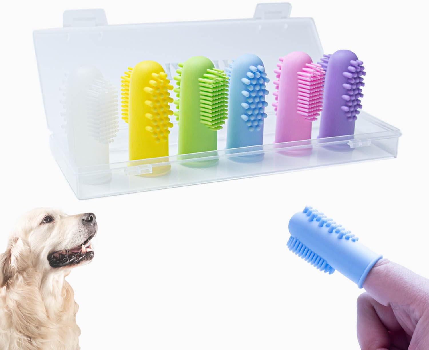 6-частична силиконова четка за зъби за кучета и котки, за премахване на плака, с кутия за съхранение, лесно почистване на зъбите (6 цвята, един размер)