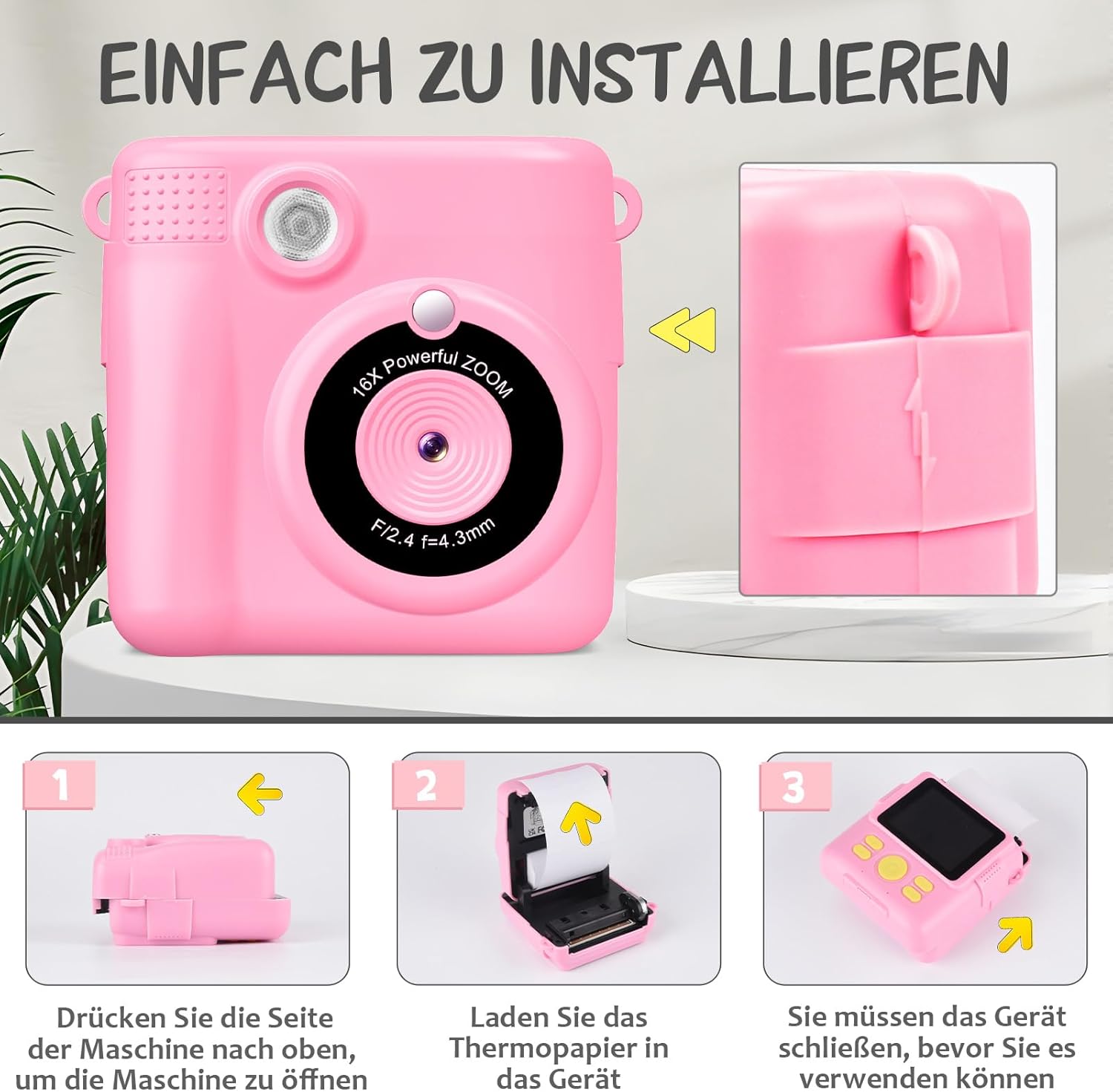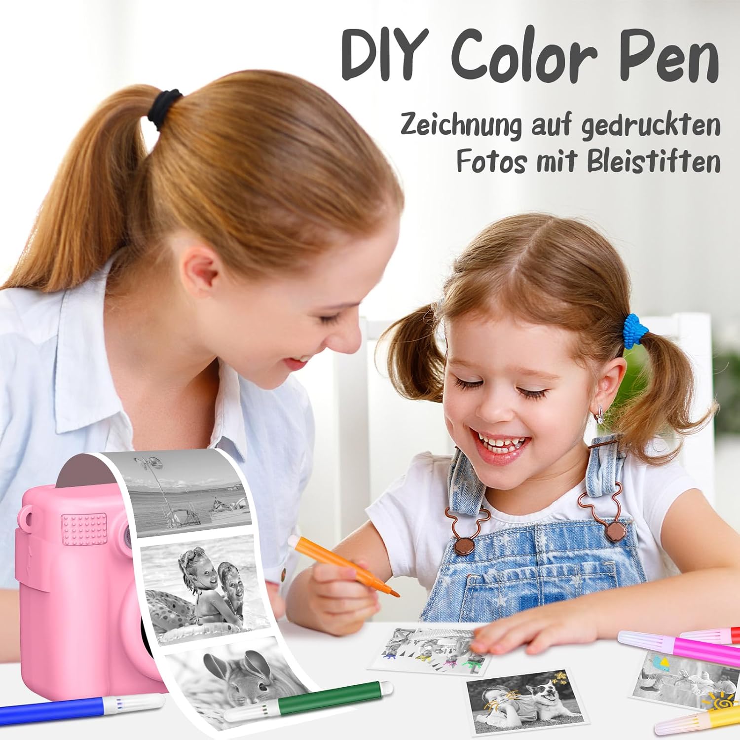 • Детски фотоапарат за моментално заснемане: изработен от висококачествен ABS материал, устойчив на удар, нетоксичен и екологичен, чудесен подарък за деца. Включената ролка термохартия позволява до 80 разпечатки и е с възможност за многократно зареждане. Цифров фотоапарат за деца на възраст 3-12 години. Това е категория детски фотоапарат играчки (не е висок клас фотоапарат).