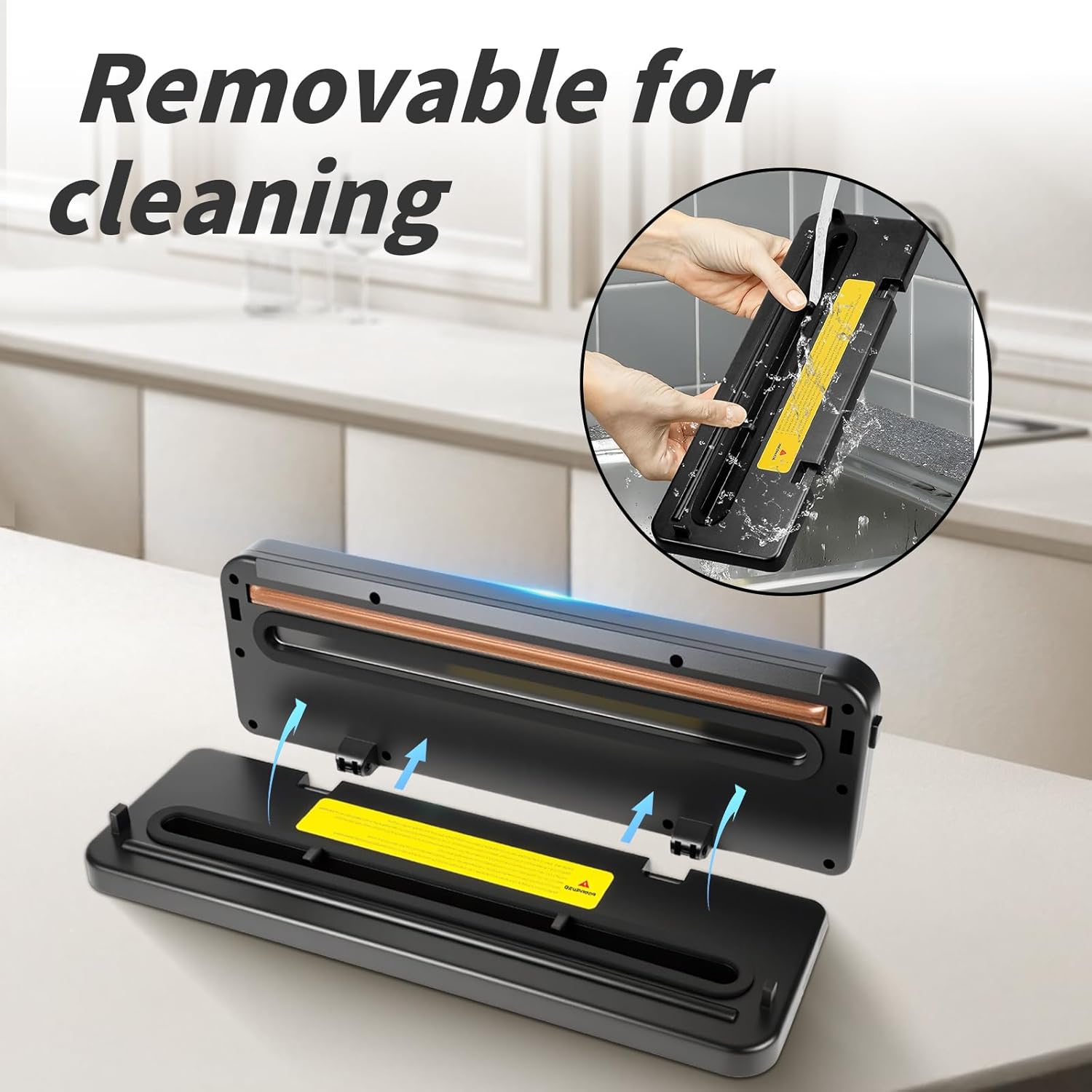 • УНИКАЛЕН РАЗГЛАВЯЩ ДИЗАЙН И ЛЕСНО ПОЧИСТВАНЕ Многофункционалната машина за вакуумно запечатване има уникален разглобяем дизайн, което прави почистването особено лесно. Това удължава експлоатационния живот и улеснява ежедневното почистване.
