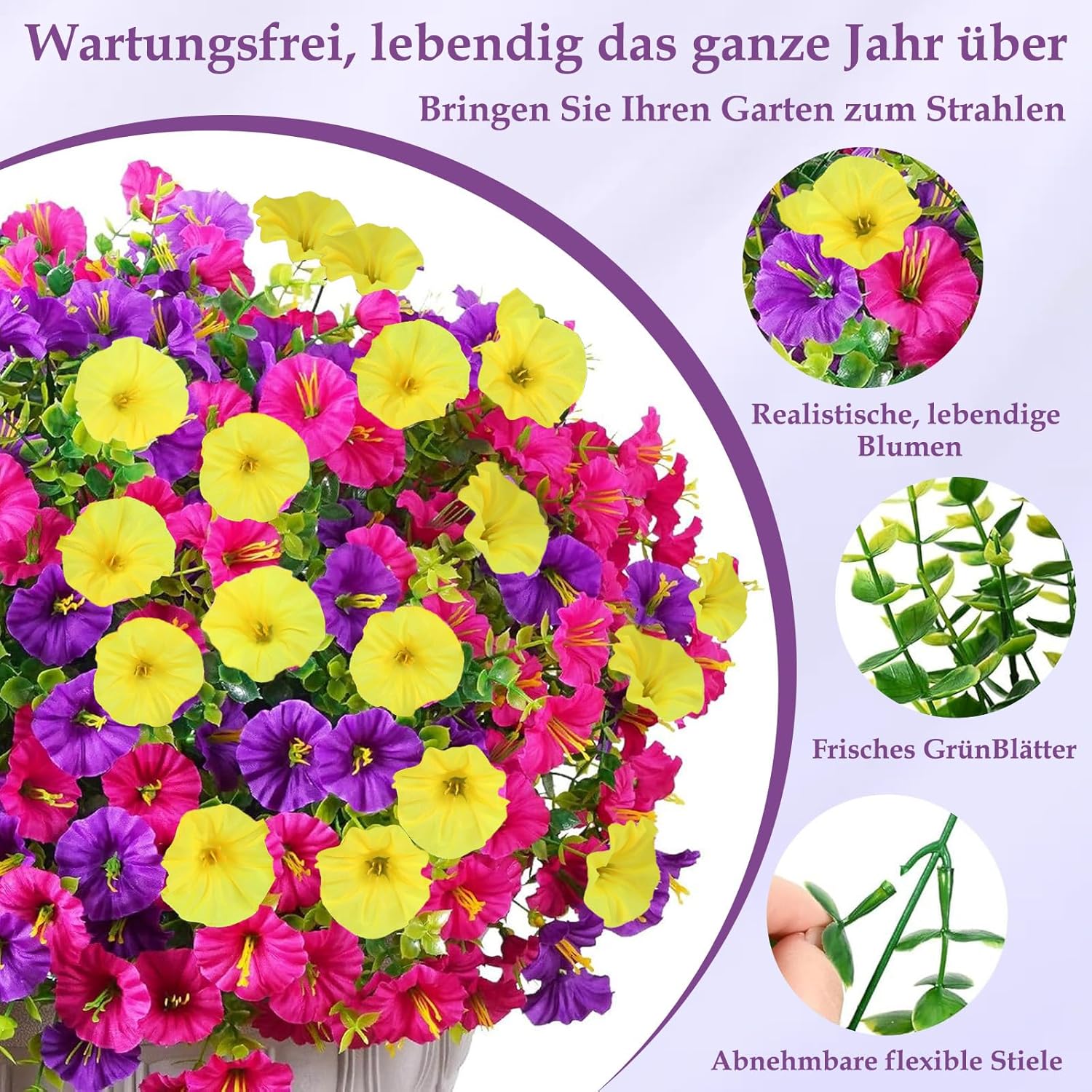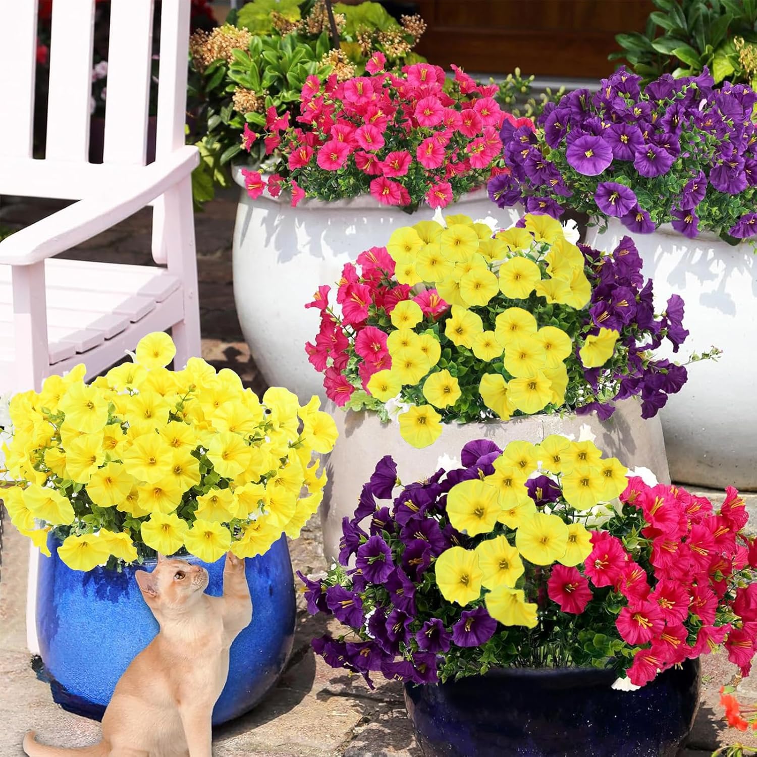 Изкуствени цветя като истински, изкуствен букет, UV устойчиви копринени цветя, балконски растения за балкон, градина, балконска сандъче, сандъче за цветя, за открито