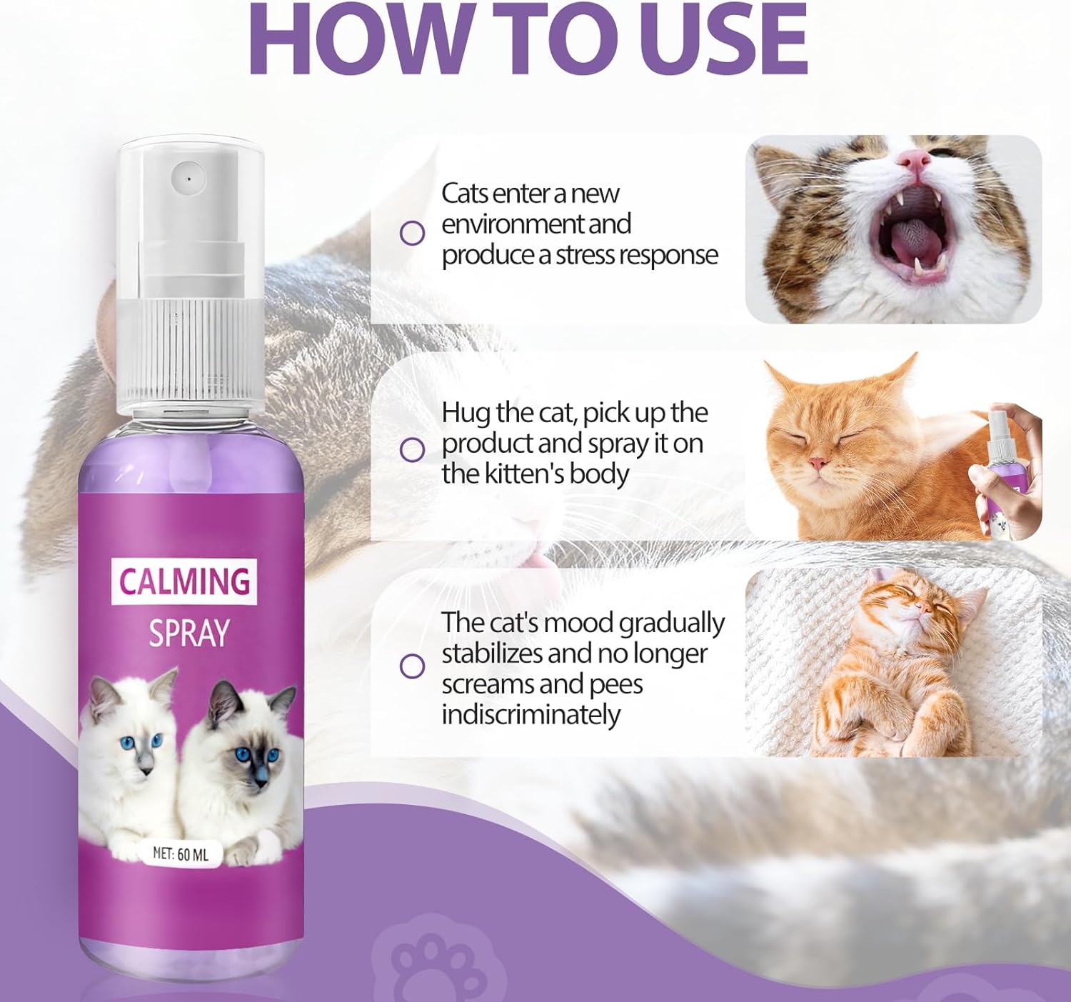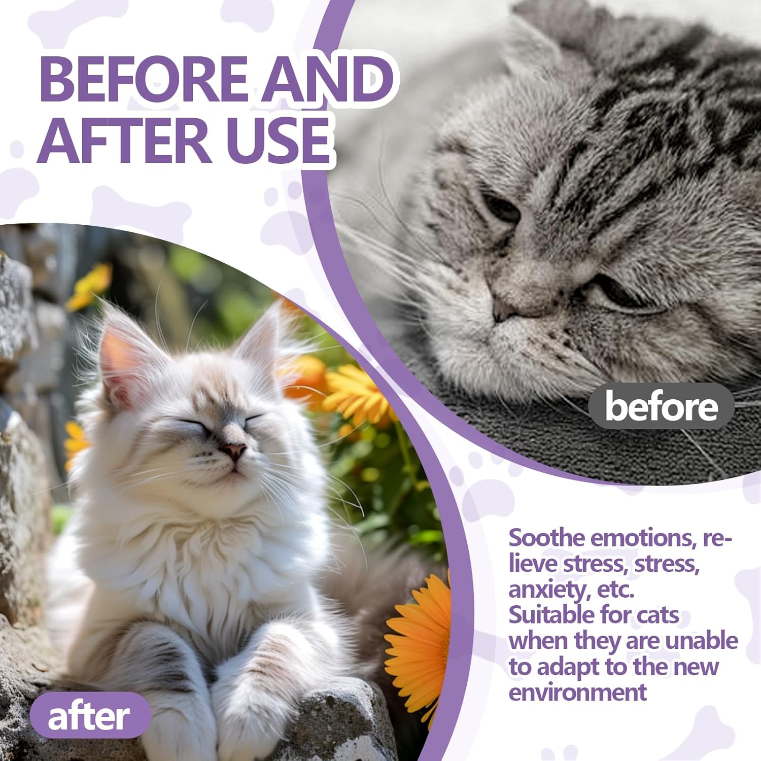 • Намалява стреса в движение: Спреят за котки помага на котките да останат спокойни, изпраща им послания за релаксация и помага за намаляване на стреса по време на пътуване.