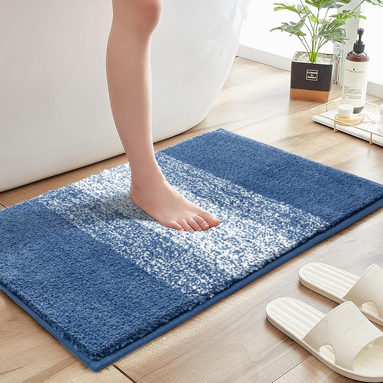 60 x 90 см Килимчета за баня и килимчета за баня от микрофибър, меки, абсорбиращи, неплъзгащи се, килим за баня, който може да се пере в пералня, с висок косъм, килим за душ за хол, спалня, син