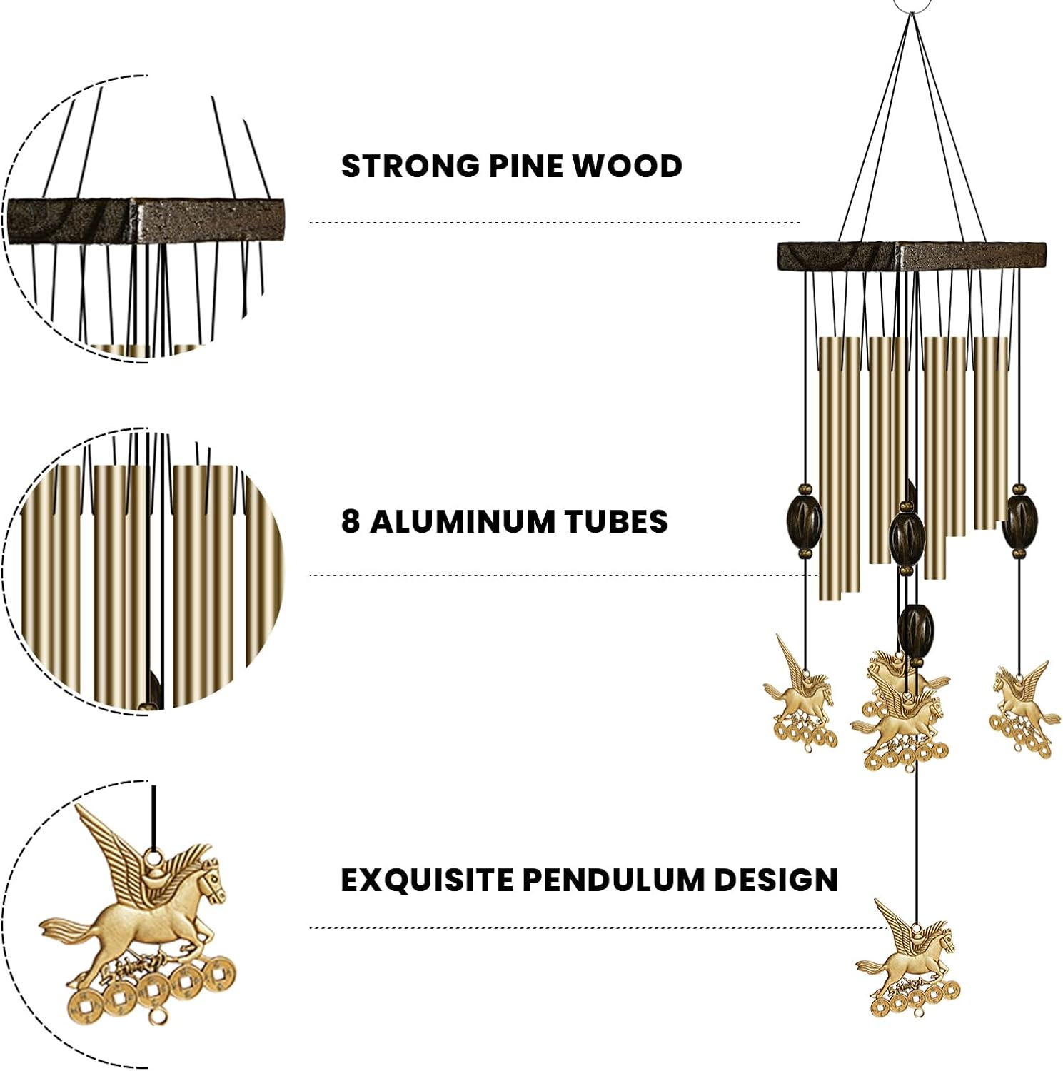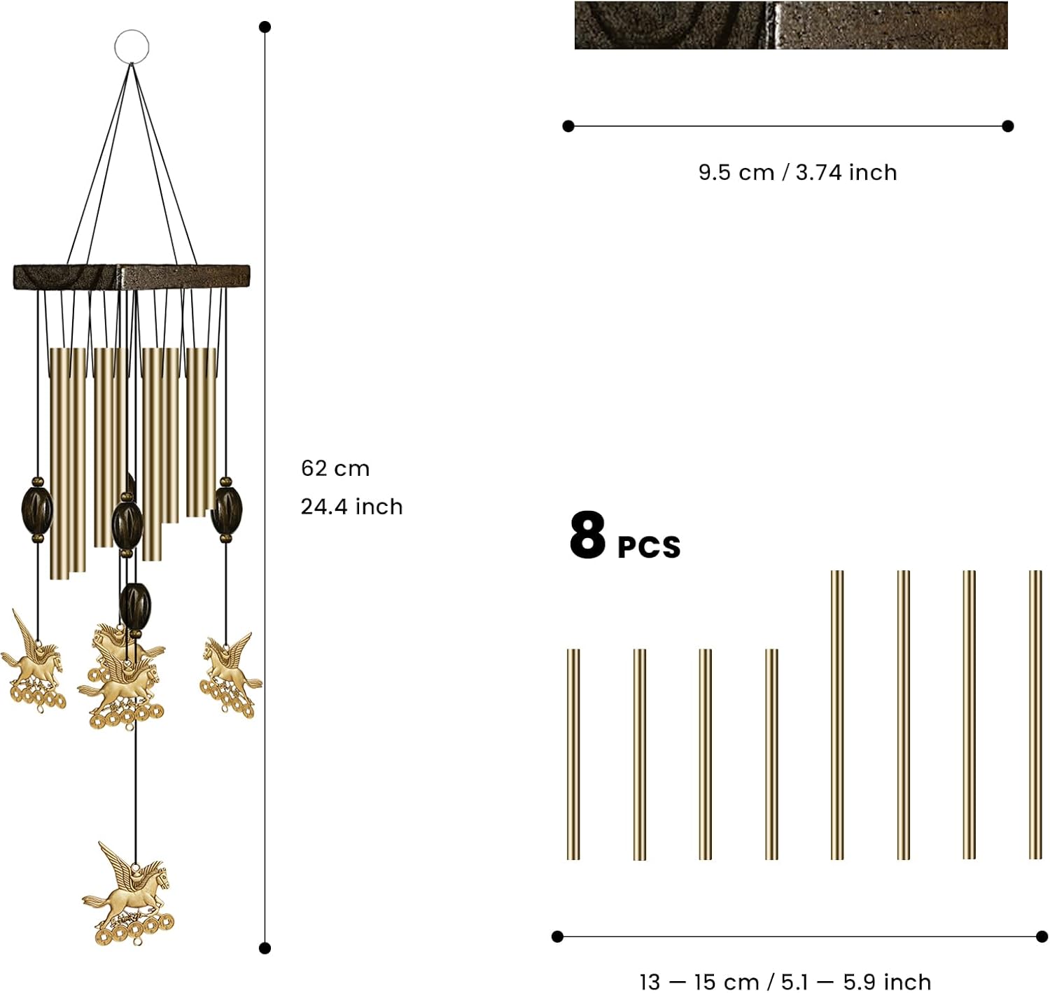 61 см вятърна камбанка с 8 тръби, вятърна камбанка с S-образни куки, която може да издава красиви звуци, подходяща за вътрешна употреба, градини (за коне)