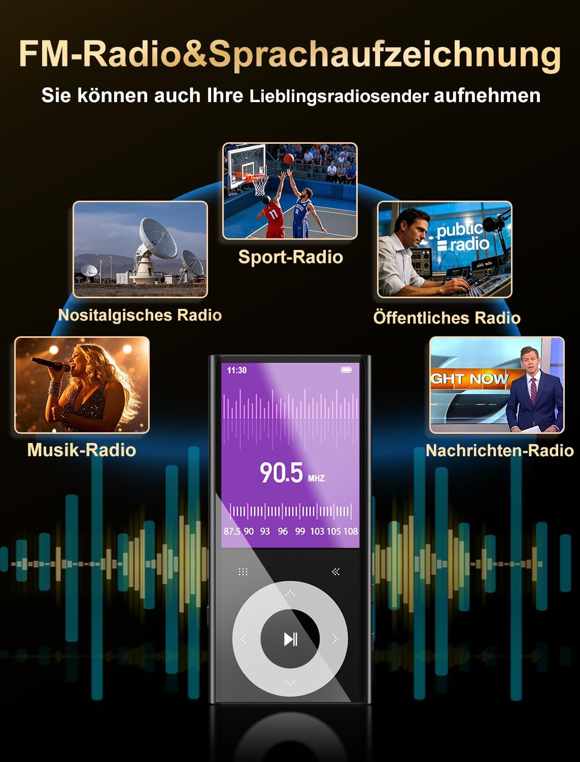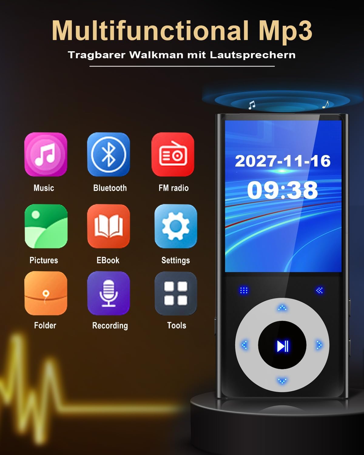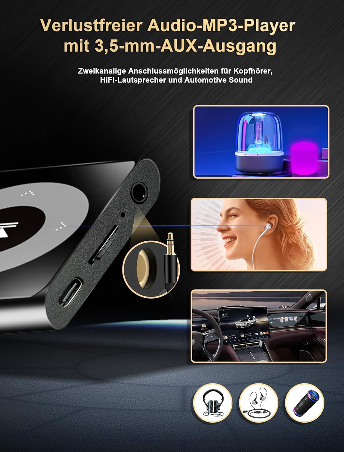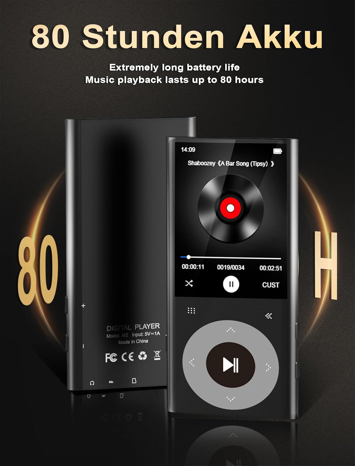 • HiFi качество на звука без загуби: Bluetooth MP3 плейърът ви предлага оригинално музикално изживяване без загуби с професионален интелигентен чип за цифрово намаляване на шума и усъвършенствана HiFi технология. Поддържа избор на еквалайзер: рок, фънк, хип-хоп, джаз, класика, техно и персонализиране. Поддържа повечето популярни аудио формати: MP3, WMA, WAV, APE, FLAC и др.