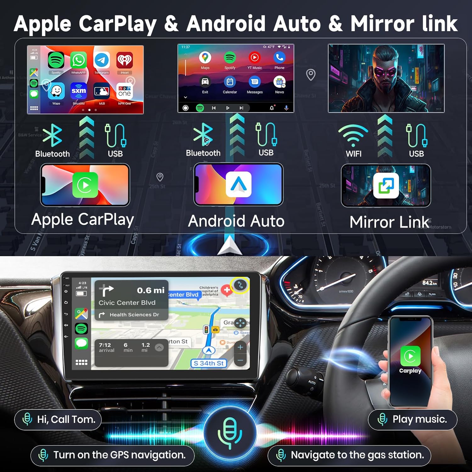 • Свързаност с безжичен Carplay, Android Car и MirrorLink: останете свързани със света с двудиновото автомобилно радио за Peugeot 2008 2012-2018 с разширени опции за свързване. Функцията MirrorLink позволява безпроблемна интеграция на устройства, докато Wireless Carplay и Wireless Auto гарантират, че функциите на вашия смартфон са винаги под ръка, а шофирането ви е подобрено с комфорт и безопасност.