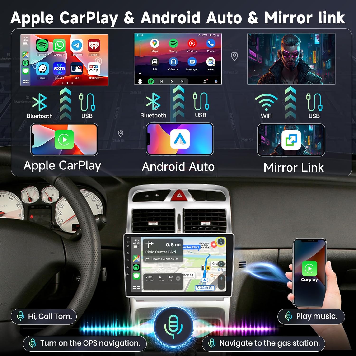 [6G + 128G] 8-ядрено автомобилно радио за Peugeot 307 307CC 307SW 2002-2013 Android автомобилно радио с безжичен Carplay Android, Hodozzy 9-инчов сензорен екран Bluetooth навигация, WiFi USB, DSP, FM/RDS радио,