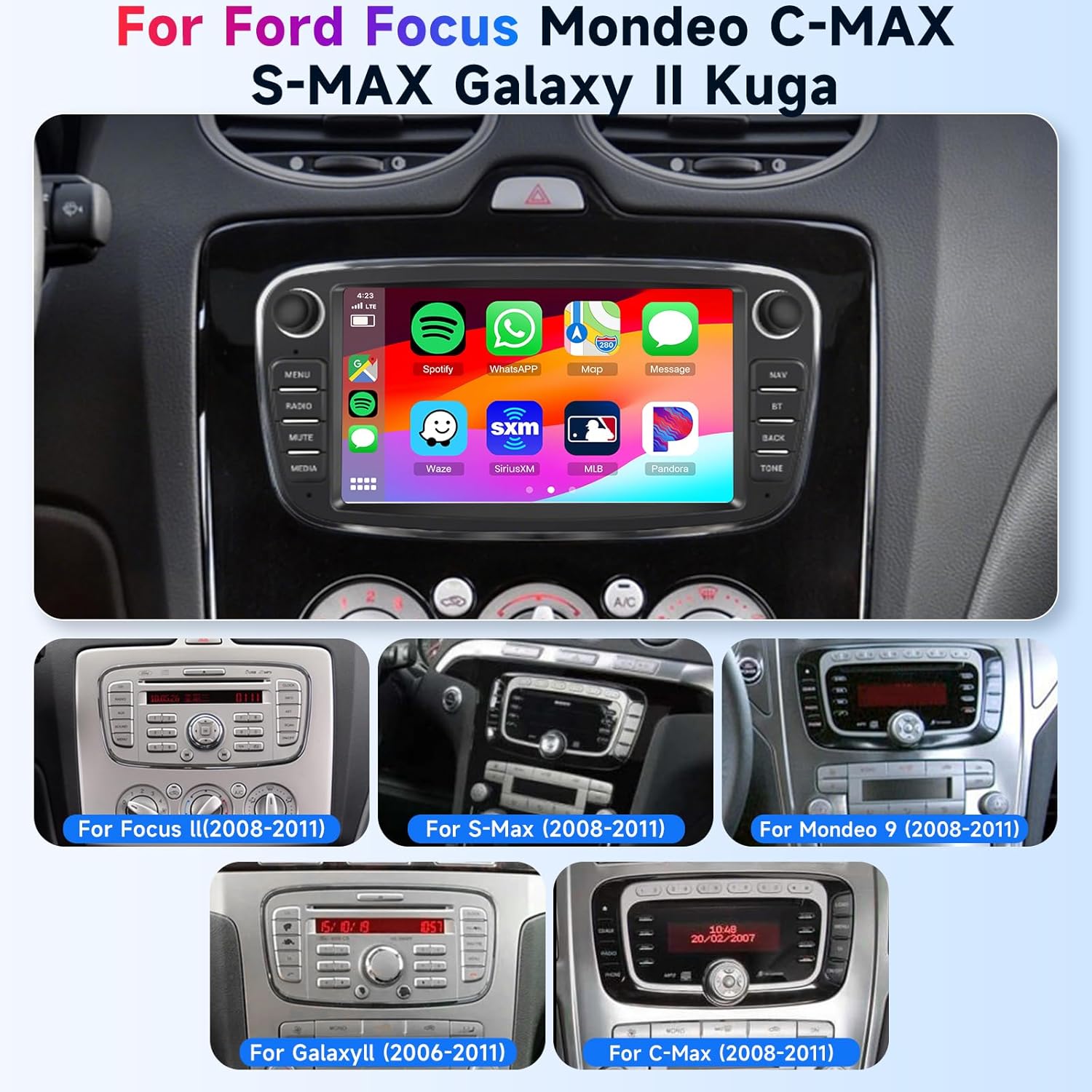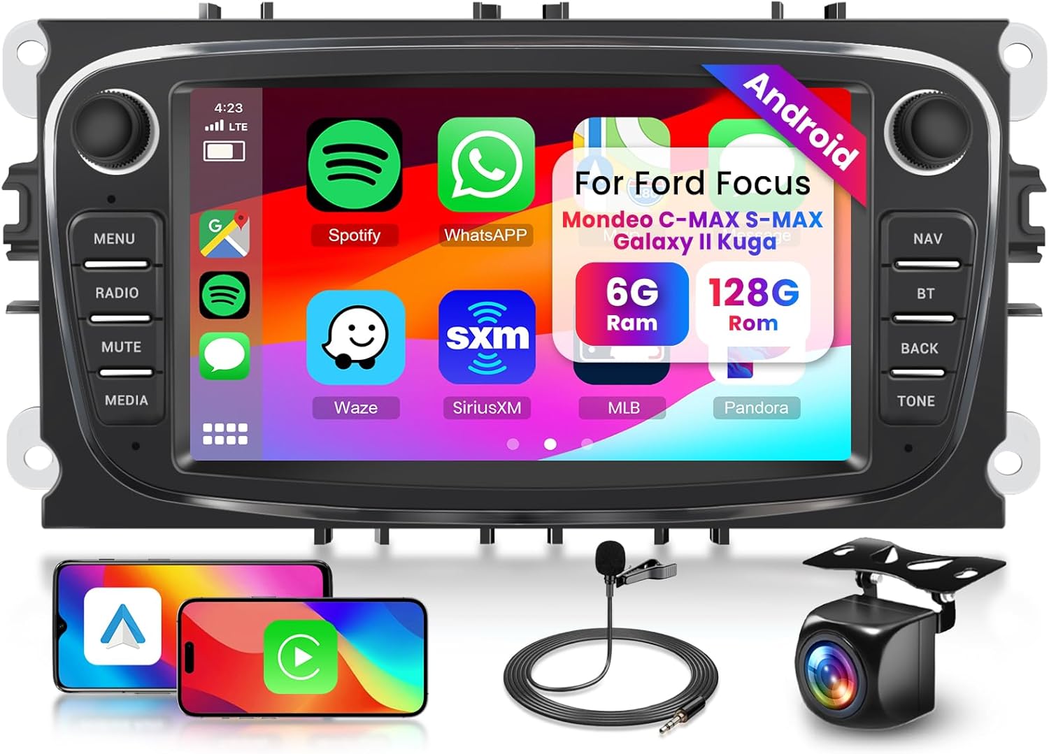 [6G+128G] 8-ядрено автомобилно радио за Ford Focus II mk2 Mondeo S-Max C-Max Galaxy Android автомобилно радио с Bluetooth GPS, 7-инчов сензорен екран Hodozzy с безжичен Carplay Android автомобил, WiFi USB, DSP, FM RDS