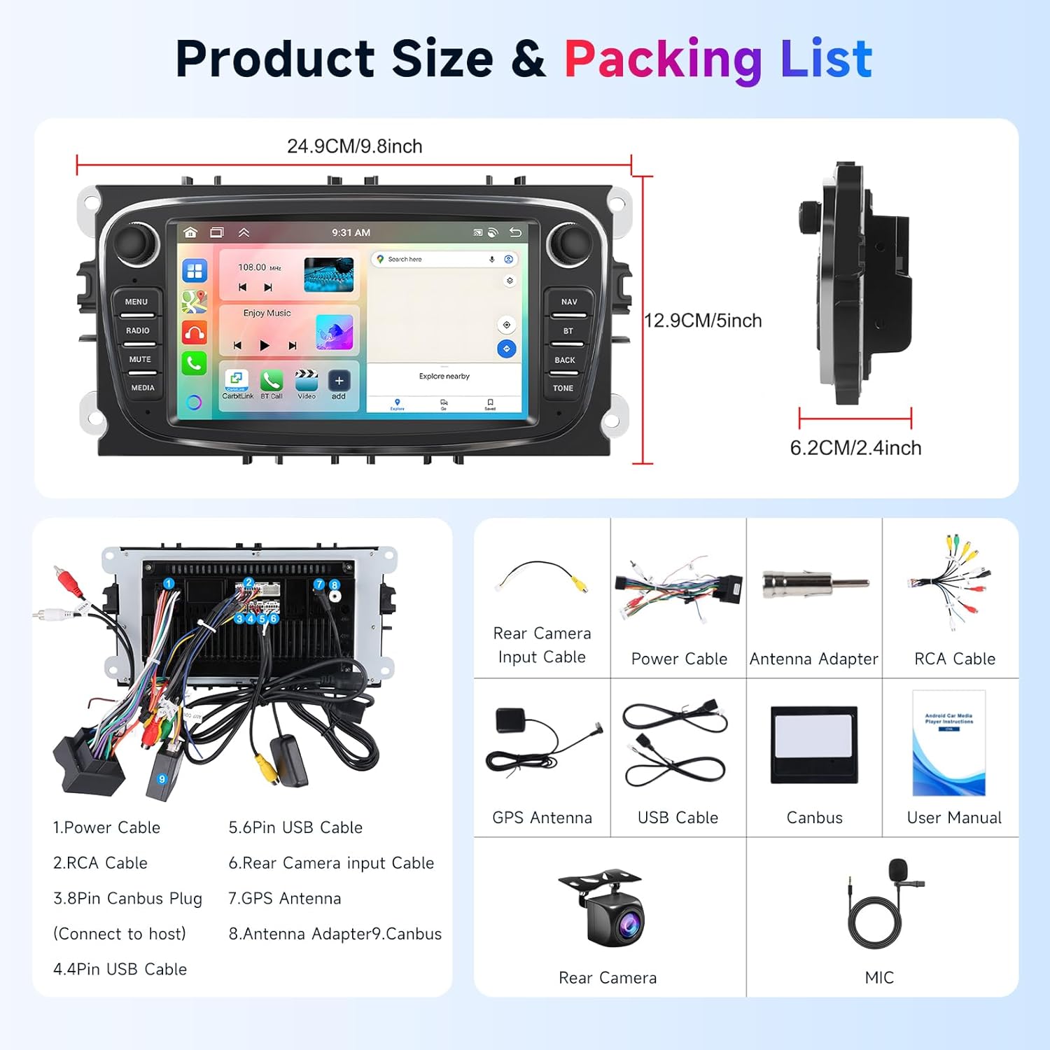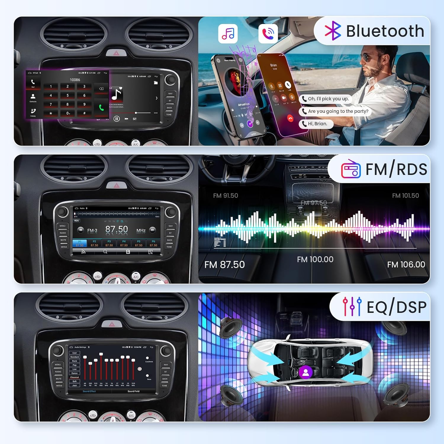 • РАЗВЛЕЧЕНИЕ И ФУНКЦИОНАЛНОСТ С ВГРАДЕН DSP, GPS И FM/RDS РАДИО: Автомобилната стерео система Ford Focus II mk2 Mondeo S-Max C-Max Galaxy CarPlay предлага първокласно качество на звука и 32 вградени EQ-DSP настройки, които настройват звука според вашите предпочитания. Навигирайте безопасно с GPS навигационната система и бъдете в крак с FM/RDS радиото – което я прави цялостен център за забавление и полезност за вашия автомобил.
