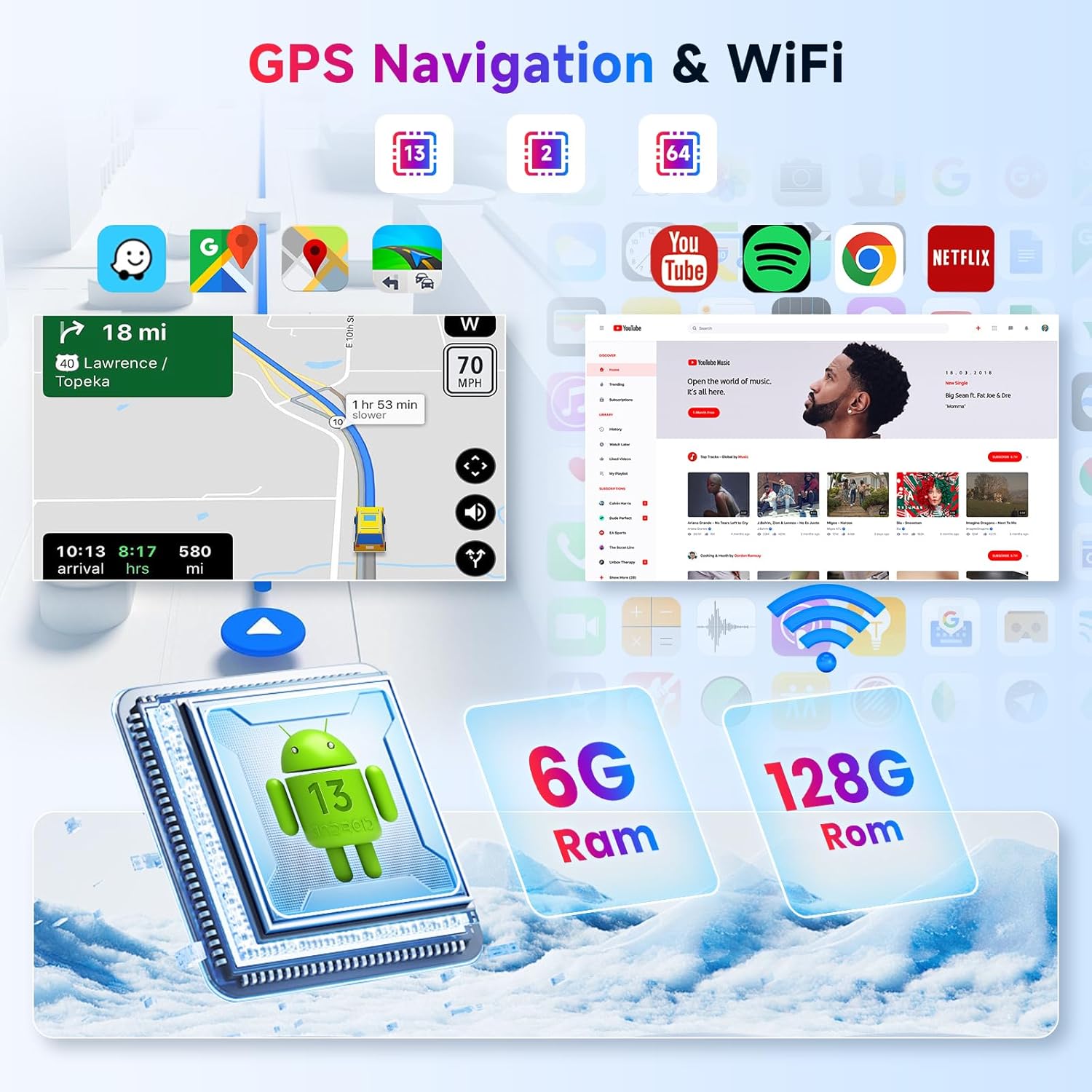 • Мощна производителност с 8-ядрен процесор: Главното устройство с Android за Ford Focus II mk2, Mondeo S-Max, C-Max, Galaxy предлага светкавично бърза обработка благодарение на 8-ядрения процесор. 6 GB памет и 128 GB място за съхранение гарантират, че всички функции – от GPS навигация до възпроизвеждане на мултимедия – работят изключително бързо и ефективно.