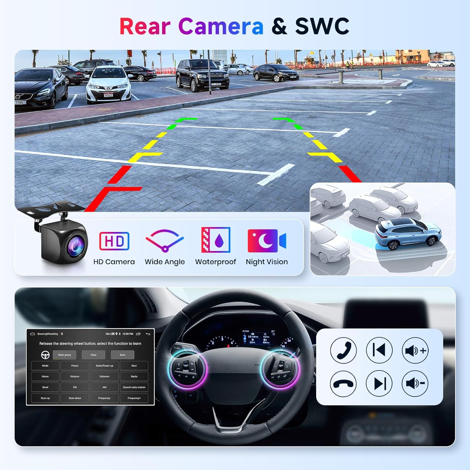 • Персонализируем потребителски интерфейс и допълнителни функции: Персонализирайте шофирането си с 59 уникални дизайна на работния плот и 19 тапети. Функцията за разделен екран предлага различни опции за показване, които могат да бъдат разделени между три екрана едновременно. Други функции включват два USB порта, поддръжка за камера за задно виждане и микрофон, управление от волана и гласово управление. Оборудван е и с широкоъгълна AHD камера за задно виждане и микрофон.